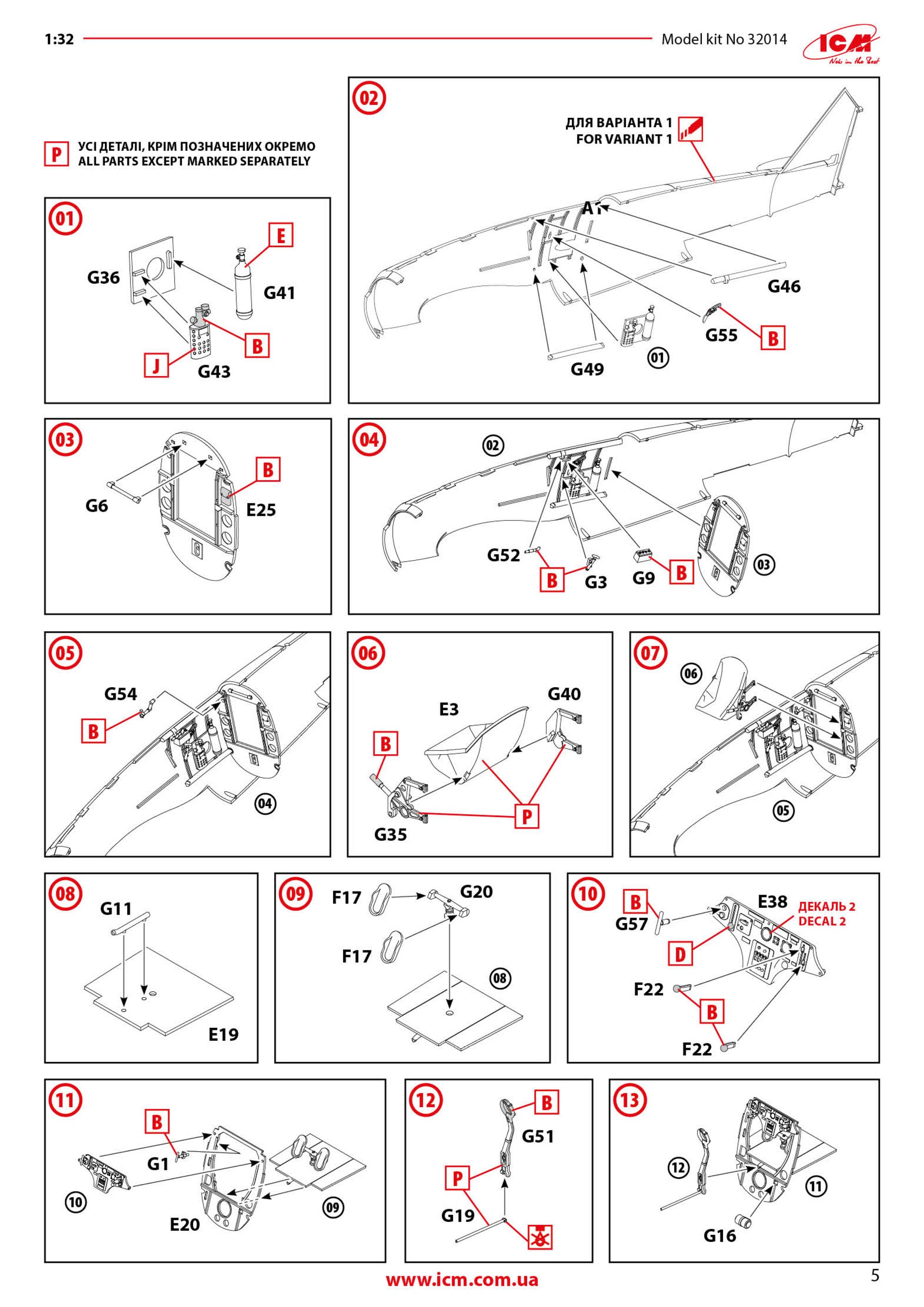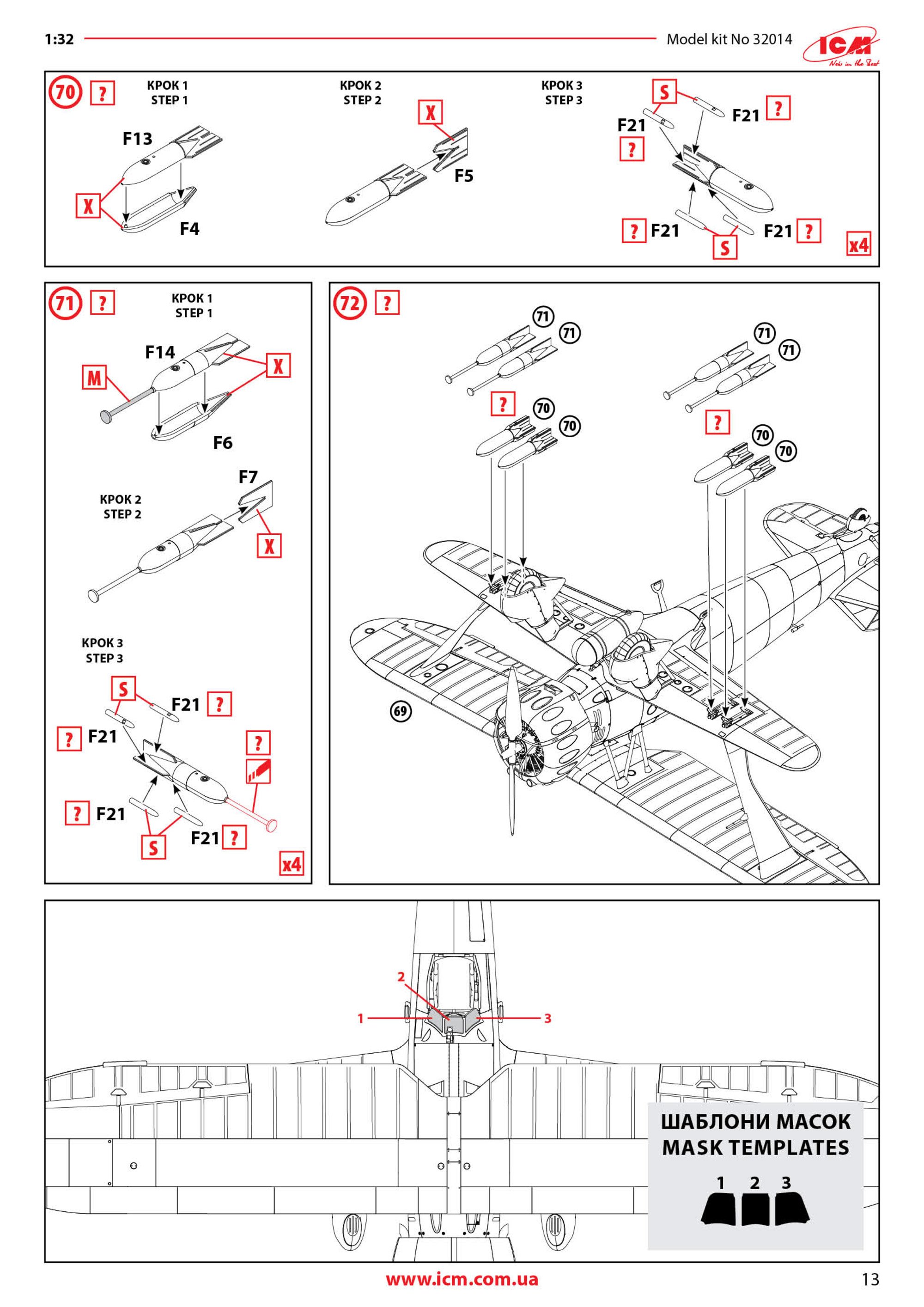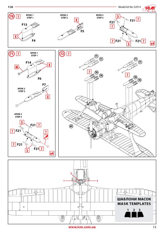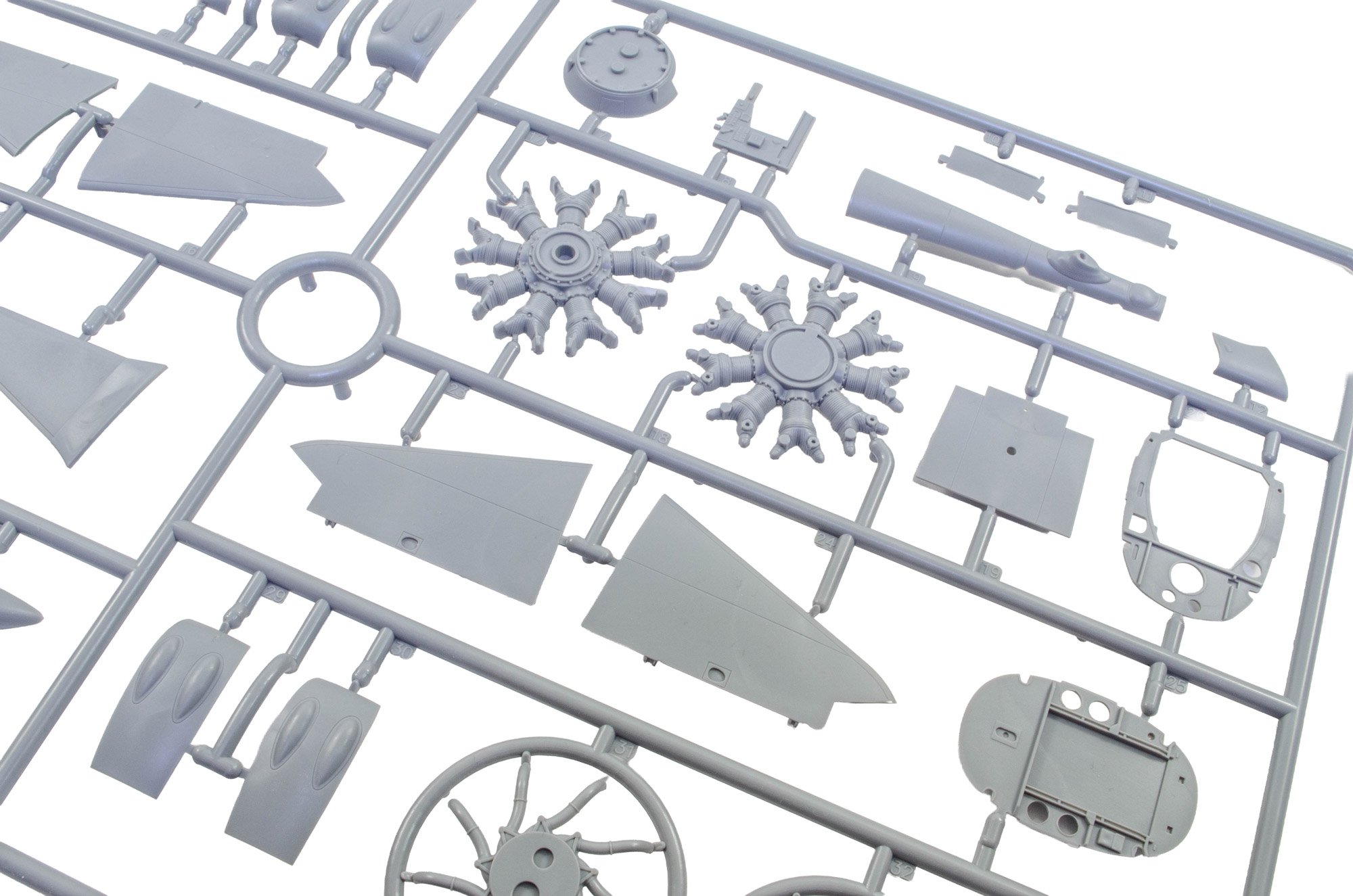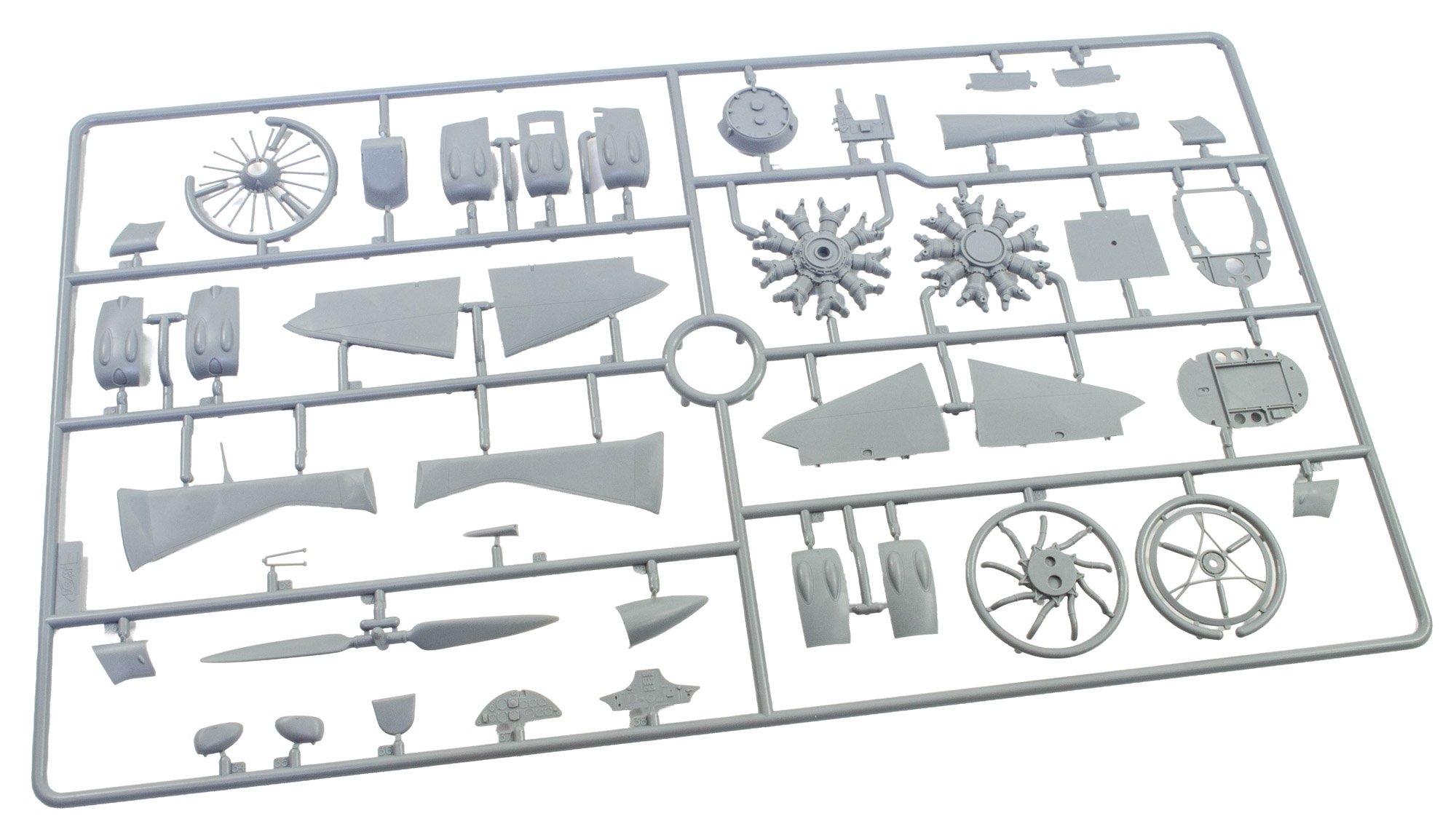 1:48 Hs 123A-1 ICM Catalogue # 32016 Available from Jadlam for £47.49 The Henschel Hs 123A-1 was a German single-seat biplane dive bomber and ground-attack aircraft developed in the early 1930s, during a period when the Luftwaffe was still in its formative stages. Designed by Henschel Flugzeug-Werke, the Hs 123 first flew in April 1935 and was initially intended to serve as a modern dive bomber for Germany’s rapidly expanding air force. At the time, biplane designs were becoming outdated, but the Hs 123 stood out for its strong construction, excellent manoeuvrability, and reliability. The A-1 variant was the first production model and entered service in 1936, helping to establish Germany’s early close air support and tactical bombing capabilities. The Hs 123A-1 saw its first combat use during the Spanish Civil War (1936–1939), where it was flown by the German Condor Legion in support of Nationalist forces. In this conflict, the aircraft proved highly effective in ground-attack missions, using bombs and machine guns to strike enemy troops, vehicles, and fortifications. Pilots praised its ruggedness and ability to operate from rough airfields close to the front lines. The aircraft’s radial engine produced a distinctive sound in dives that was designed to intimidate enemy troops, adding to its psychological impact. Experiences in Spain demonstrated that, despite its outdated appearance, the Hs 123A-1 was well suited to low-altitude battlefield support. During the early years of World War II, the Hs 123A-1 continued to serve with the Luftwaffe in campaigns in Poland, France, and on the Eastern Front. Although more modern monoplanes were becoming standard, the Hs 123 remained in use because of its durability and effectiveness in harsh conditions. It was especially valued in the Soviet Union, where it could operate from primitive airstrips and withstand heavy ground fire. By 1942, most Hs 123 aircraft had been replaced by newer designs such as the Junkers Ju 87, but some remained in frontline service until 1944. The Hs 123A-1 is remembered as one of the last successful combat biplanes and as an important contributor to early German close air support doctrine. The kit This kit is ICM's fourth incarnation of the Henschel Hs 123 kit, since its inception in 2024. For me, this probably has the most bizarre but extremely attractive scheme that ever adorned this type. The kit itself is packaged into one of ICM's very sturdy top flap opening boxes, with a separate glossy lid depicting that particular machine that I mentioned. Inside, there are EIGHT sprues in grey styrene, and one in clear. There is also a 16 page, full colour instruction booklet, and TWO decal sheets. Ok, let's take a peek... Not too many parts on this sprue, but we do start with a view of the fuselage halves. The kit is moulded in ICM's usual mid/light grey styrene which melts beautifully with a decent cement like Tamiya's hot stuff. The fuselage is typical of ICM in that there's no rivet detail, but the panel lines are nicely represented with some finesse. If you want rivets, then it's time to put Rosie to use. You could, I suppose open the louvres up a little, but I'm not convinced that it would be necessary as the gap would be tiny. Some wash in there would probably have the same effect. Internally, the fuse has some moulded detail onto which to add further detail. One particular machine will need hole(s) drilling out, clearly shown in the manual. Also supplied here is the forward upper fuse with integral MG channels, and a two-part drop tank that will be slung underneath he fuse centreline. Three parts comprise the lower wing, with the underside being full span (yet relatively small in 1:32). Again, no rivet detail, but pretty much everything else. The landing flaps are moulded in a closed position. The lower wing doesn't have ailerons, so no need for such details. The strut sockets are reasonably deep too, meaning fitting and mounting the upper wing should be quite easy. All parts here are used except for two upper wing inserts which would be used to hang the ailerons. There is a set to use here, so not quite sure what the difference is except for a possibly different aileron style. Here you will fine the aileron, elevator and rudder halves. all with excellent fabric and rib details...not too harsh to my eye. There are TWO of these sprues, duplicating all of the parts of which there are two or more. Here you will find undercarriage struts, spats, ordnance (plus percussion bombs), wheels, bomb racks, fuselage MGs, etc. Everything on this sprue is to be used with this release. This is where you'll find many of the cockpit details, as well as two-part intake unit, cabana struts, tailplane support struts (moulded as a single part), engine exhaust array, and things such as control surface push/pull rods. Now we can see the various parts which construct the BMW 132D radial engine, These are moulded in beautiful detail, and with some quite fragile parts that could use some decent quality nippers to remove from the sprue. You will also see the multipart engine cowl with its familiar blisters, wing struts, tailplane halves, two-blade prop, cockpit bulkheads, seat, and instrument panel etc. The entire upper wing is moulded in two full-span parts, minus the ailerons. The detail nicely represents the fabric covered original with its dope-shrunk scalloped surface. There is only one clear sprue, and it's tiny. This comprises the windscreen and wingtip lights. You can't see in this photo, but the clarity of the parts is every bit as good as other contemporary manufacturers. Decals The are TWO decal sheets in this release, catering to THREE different schemes. One sheet carries decals for just one single machine, meaning all those whacky white lines and graffiti don't have to be done by hand or masked. All decals are thinly printed and in perfect register, with minimal carrier film. Colour is solid, which is just as well with all the w
