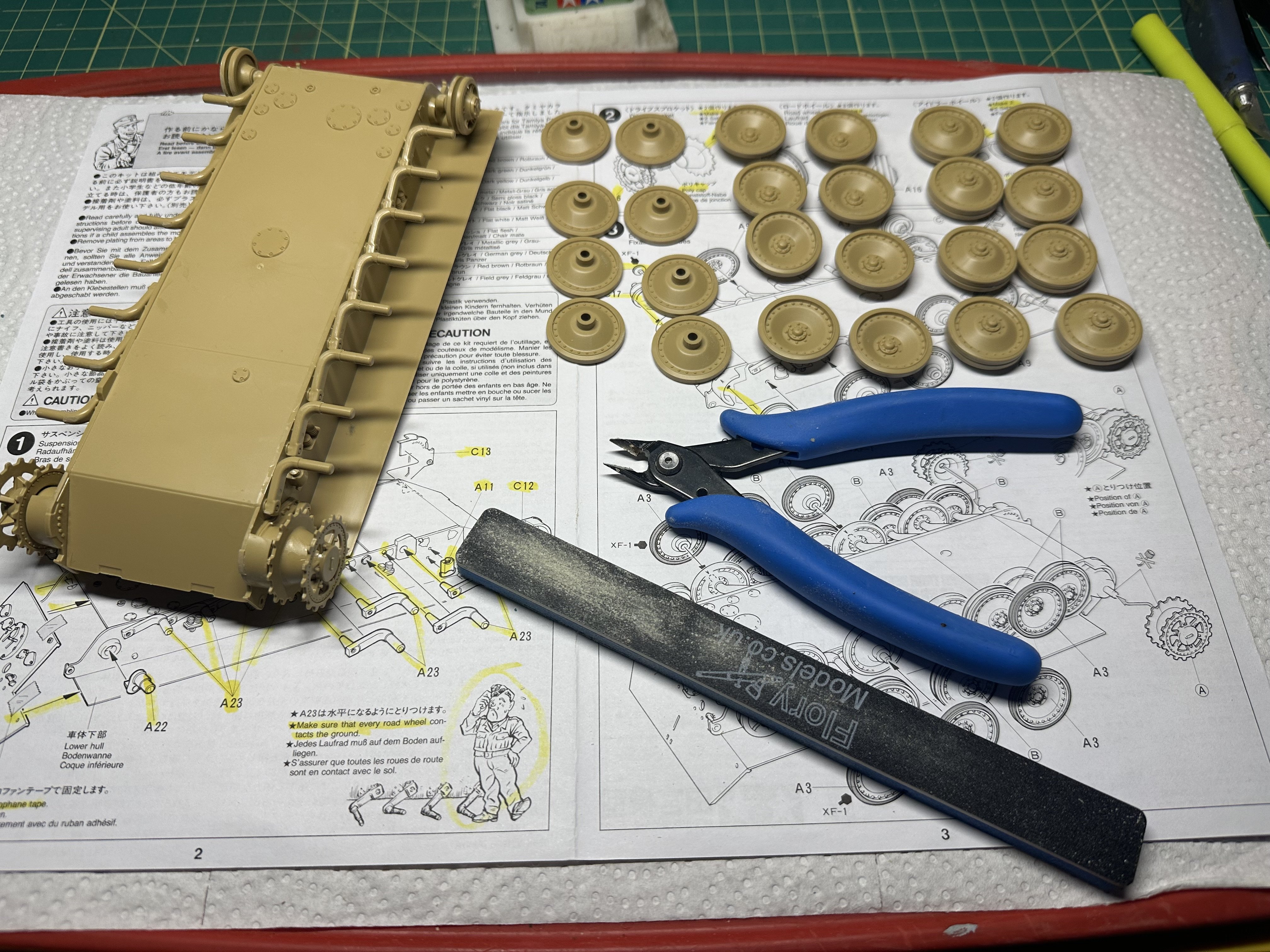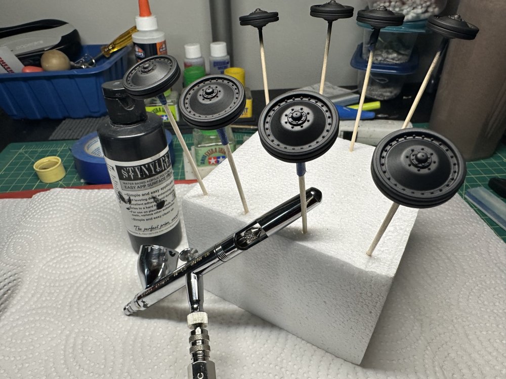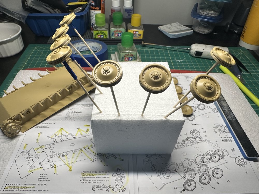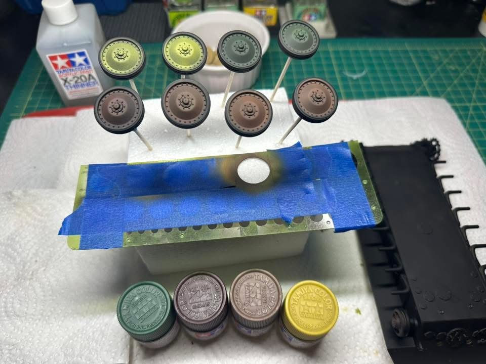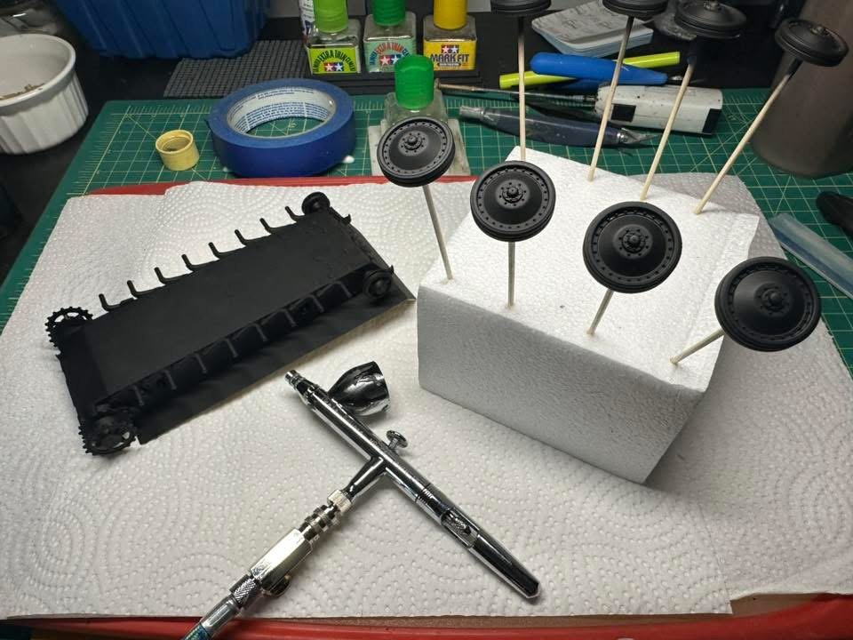 I usually paint road wheels after they’re mounted the vehicle hull so this will s a new experience. Teaching an old dog new tricks, lol!!! -