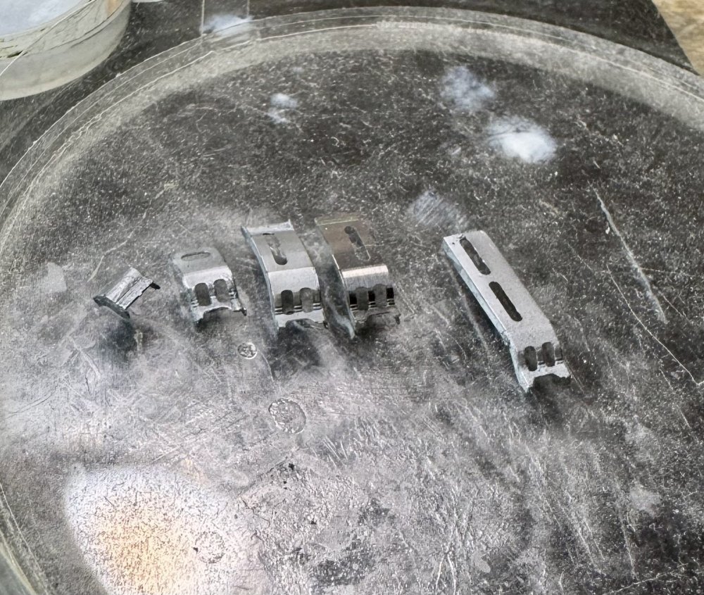 The feed chutes are folded up, glued to hold the edges, primed (super thin coat of Mr Surfacer 1200), and with a single layer of Uschi Steel powder applied (it gets a bit brighter with each layer) The Uschi powder gives what I think is actually a better finish than the bare PE steel, but I’m going to step away for a bit and come back for another look. I folded up a spare gun #2 chute from the closed side to give a contrast of bare steel PE vs the Uschi - it’s waayy too bright for scale, I think The smallest chute has a bit of texture from when I tried using a drop of CA to fill in the bending lines, applied with too-heavy a hand. 🤦♂️ I can also see another that needs a bit of fine-tuning on one edge, plus filling in more of the visible bending lines (Eduard did a pretty good job of putting them where they’re not particularly visible, but you can still see them here and there) I will likely clean these off and do another test with Alclad bright aluminum to see which I like better (and also take a few minutes to smooth down the unintended texture from the CA on the gun #4 chute 😂🤦♂️) at any rate, this is my progress for the day I'm going to do a test fit of the ammo belts, with the chutes dry-fitted, to see how much I need to extend the belts (the kit belts are already a bit short; even more so after filling the chutes where the ammo is visible. I’ll try micro-clear canopy cement to glue the belt ends together, and see if that still gives me a decent drape with no kinks - hoping it does, as that’s the simplest approach Then, it’s off to painting the belts temselves wheeeee! -