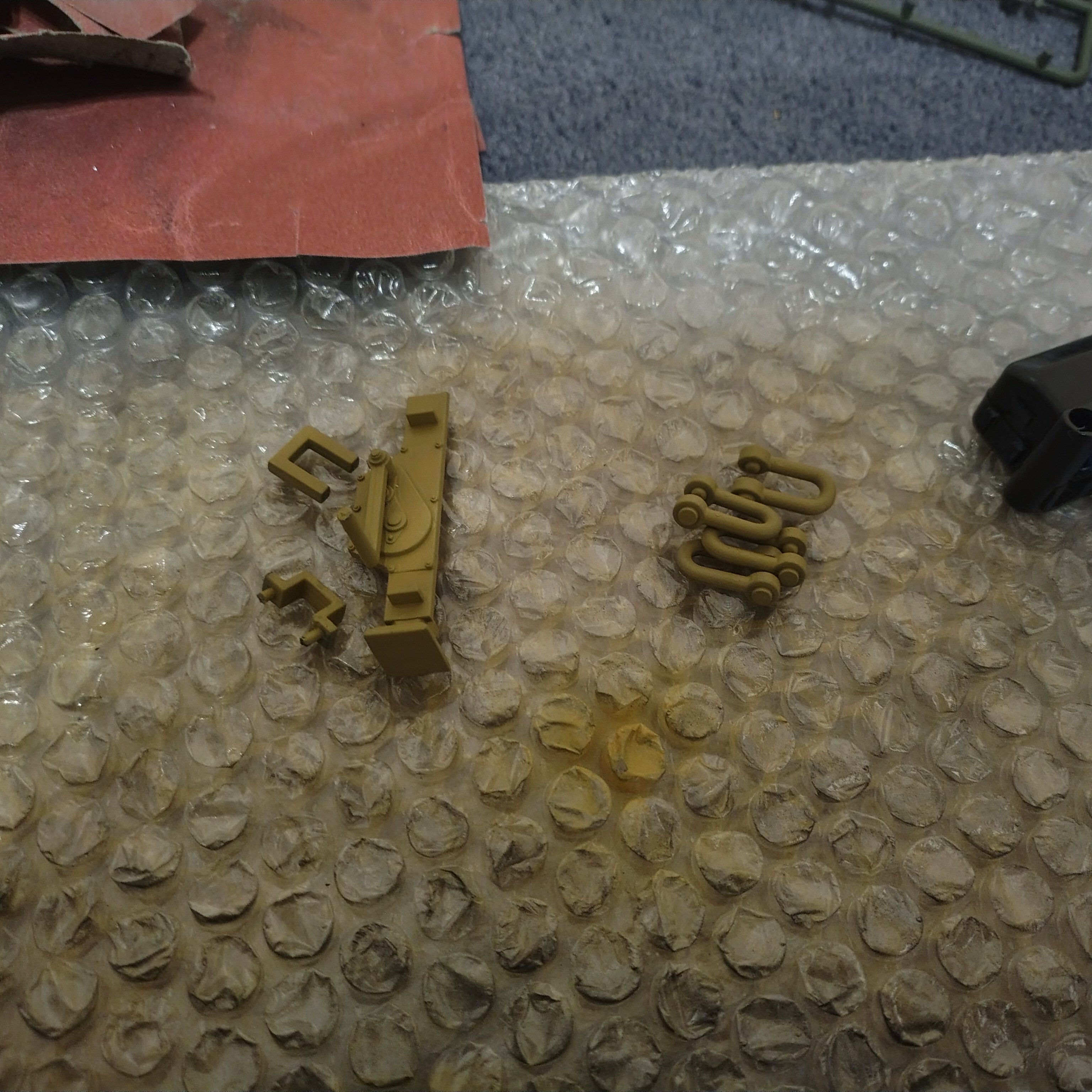 And just like that the turret parts have arrived.even a little bag of fun bits. Can also see how the hull has been repainted.And is ready for the tracks to go back on. -
