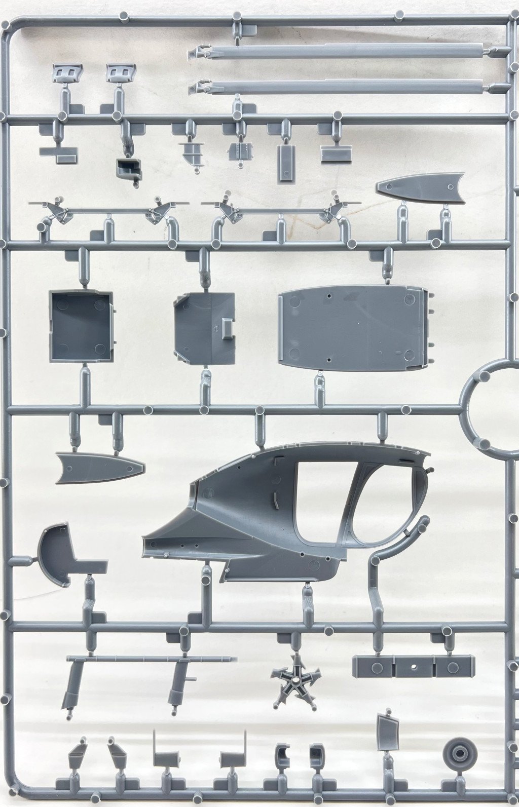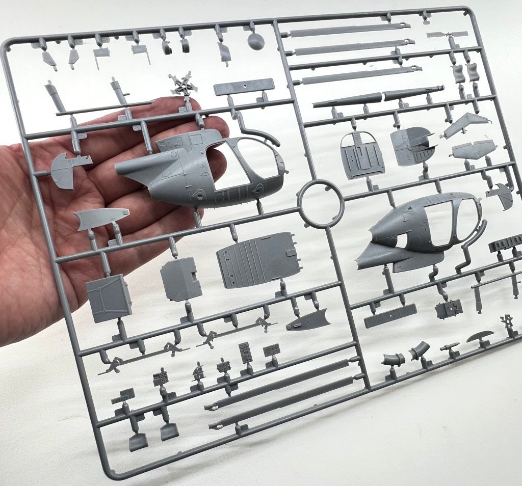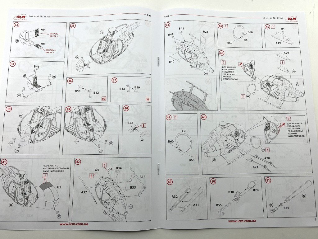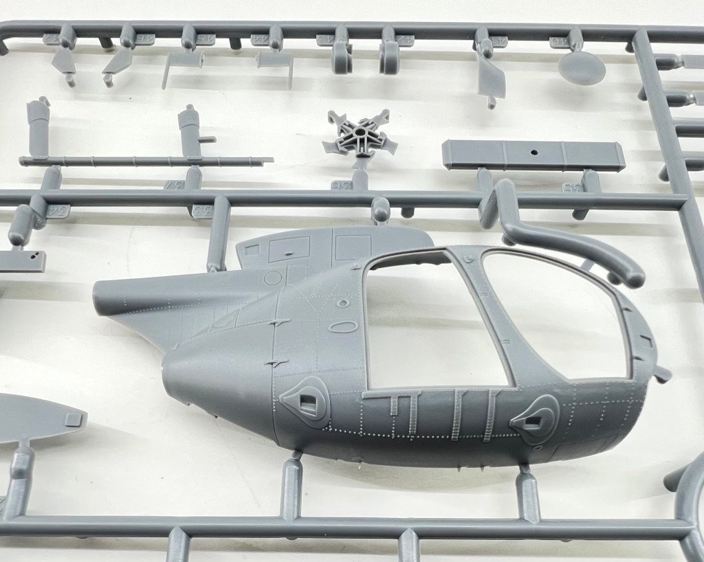 ICM 1:48 MH-6J Little Bird US special Forces Helicopter Ref: 48369 Price Tag : 31,20€ Available here Introduction The MH‑6J Little Bird is a specialised variant derived from the Hughes/MD 500 family, originally developed under the 1960s LOH program and later refined to meet the needs of the 160th Special Operations Aviation Regiment (SOAR), the famed Night Stalkers. Designed for rapid insertion and extraction of special forces, it combines compact dimensions, exceptional agility, and the ability to carry operators on external benches, making it ideal for discreet missions in complex environments. These characteristics have made the Little Bird an icon of modern special operations—and an especially appealing subject for scale modellers. In terms of modelling offerings, since the 1980s Hasegawa, Fujimi and Academy / Minicraft, have released several kits of the Hughes 500 family, mostly covering the early OH‑6 and MH‑6 variants of this versatile light helicopter. However, the more recent iterations of this little “bird” have long been overlooked—until this new release from ICM, which finally provides a modern, well‑detailed tooling of this specialised version. What’s in the Box Inside the box we find two (!!) grey sprues and one sprue with the clear parts, for a total of 147 parts, plus an instruction booklet, a decal sheet, and an ICM colour chart. I must admit that when I first received the box, I was expecting something… well, larger 😊 — but great surprises often come in small packages! My first impression was indeed: so few parts? 😄 Two sprues! A more detailed inspection quickly confirmed my expectations. The fuselage comes with recessed panel lines and raised rivets, exactly as it should. The layout of the parts allows for a quick and straightforward build. One detail that stood out while reviewing the instructions: out of all the parts, only two are not used in this model! Quite unusual! 😄 Sprue A This sprue provides the main structural elements of the model. The fuselage is supplied in two longitudinal halves (left and right), and the external detail immediately stands out: recessed panel lines for the engine covers and maintenance access panels and raised rivets and reinforcement plates with the correct size and definition for a compact kit like this. The main structural cockpit components are also present, such as the floor and the firewall separating the cockpit from the transport area. Avionics and flight control components are included and display very good detail, which will stand out beautifully once painted. The seats do not include moulded-on seatbelts. One must scratch-build them or use aftermarket replacements. The tail is moulded as a separate piece, which eases assembly and handling, and can conveniently be added after painting. The tailplane is provided in four individual parts, each featuring subtle raised reinforcement plates. No engine is included — only the exhaust nozzle. Sprue B This sprue supplies the smaller components that complete the model. Here we have various antennas and external avionics/communication boxes. All the components for the main rotor are included here, providing an accurate representation of this critical part of the helicopter. Additional small cockpit parts are present, such as pedals, cyclic sticks, and engine collective controls. An interesting and original detail is the inclusion of door handles (both interior and exterior). One of the build options allows the model to be displayed with or without the cockpit doors. Sprue G This small sprue contains the clear parts, which are free from distortion and scratches. The photos do not do justice to their quality. The large, slightly concave front windscreen immediately stands out and fits onto the nose section. The front doors and various navigation lights make up the remaining pieces. The framing detail is excellent, with raised rivets that look fantastic once painted. For those who prefer to cut their own paint masks, the raised frames will greatly ease the process. Decals The small decal sheet provides markings for four aircraft, all belonging to the 160th SOAR Two stencil options are included for each aircraft: buzz numbers and U.S. Army identification in black, or in olive drab. Instrument panel dials are included (separate, without background). A small “no fear” inscription is supplied for one aircraft, to be placed on the nose. The rest of the stencils are generic. White rotor-blade stripes are also provided as decals. The quality is in line with ICM’s usual standard, with good colour saturation, minimal carrier film, and sharp printing. Instructions As typical of ICM, the A4 booklet with 12 pages presents the assembly 67 steps clearly and without ambiguity, making it easy to follow. The first page lists the colours needed for the full paint scheme. Marking Options As noted earlier, four marking options are included — all aircraft from the 160th SOAR, circa the 1990s, and all painted in a single dark shade (a greyish black) with low-visibility markings appropriate for the stealthy role these aircraft performed. Conclusion This is a small but excellent model of an iconic helicopter, immortalized in the film “Black Hawk Down”. The simplicity of the parts makes it appealing both to beginners and to experienced modellers. Without doubt, this new kit of this compact helicopter will surely lead to other versions in the near future (hopefully!), such as armed, naval, or even civilian variants. Until then, we have this little modelling gem — highly recommended! My thanks to ICM for providing the review sample!