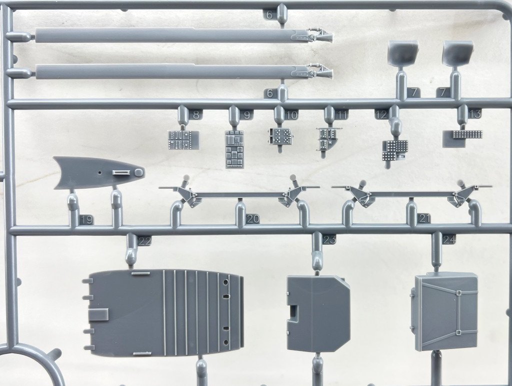 ICM 1:35 Panzerspähwagen (Funk) P204(f) Ref.35378 Introduction The Panhard 178 was one of the most iconic armoured reconnaissance vehicles of the pre-Second World War era, developed by France to equip its mechanised cavalry units. Featuring an innovative design for its time, combining good mobility, adequate armour and effective armament, it quickly became an essential element in French reconnaissance operations. After the fall of France in 1940, hundreds of these vehicles were captured by the Wehrmacht and incorporated under the designation Panzerspähwagen P204(f). The Germans adapted some units, reinforcing armament and modifying communication systems, in this case a rectangular frame antenna monted on the top of the vehicle, using a pivotal support on the top of the turret and the remaing supports on the rear of the vehicle. Usually used a radio FuG 10, used for long range communications, which operated on high frequencies. Employing them in patrol and security missions across occupied territories. This dual history — as a symbol of French defence and as a resource repurposed by the invader — makes the Panhard 178 a fascinating piece for any enthusiast of historic military vehicles. This set released by ICM as command vehicle is in fact a new variation for the originally released in 2015, has already been offered by several brands and in various versions. However, this command variant in German Army colours (on wheels) is being made available for the very first time. Whats in the box! In typical ICM design, we have a top-opening cardboard box that protects its contents very securely. Inside, there are a total of eight sprues (two with the rubber tyres), and one of them contains the communication antenna typical of these radio-equipped versions. The box also includes an instruction booklet, a decal sheet, and a colour chart featuring ICM’s paint range. At first glance, the kit offers a very acceptable level of external detail, with the numerous rivet lines that make up the vehicle’s structure standing out, as well as the complete underside protection of the hull. A full interior is provided—simple, but adequate considering what will be visible once the model is assembled. A complete engine and the two driver compartments are also included. Lets then visit the sprues for more detail! Sprue A This sprue provides the outer side panels of the vehicle in a single piece, along with the entire lower structure where the parts will be mounted. The rivet detail on these pieces is noteworthy. The engine block is also supplied in two halves. A very fine detail if you ask me! The rivets details are impressive and present in all the hull Interior detail is present in the one part mould lateral structure Sprue B This sprue includes the interior floor of the vehicle (onto which many interior details will be added), as well as horizontal plates of the armoured structure (rear cooling and engine access panels, side panels, and the front plate). A common feature remains the finesse of the details and finishes, such as the engine cooling grilles, which, despite being moulded in a single piece, faithfully represent the real panels. the interior anti splip floor is present, allowing the final model to be present with doors and hatches open! The cooling air panel is moulded in the rear panel, and it's very scale convincing ! Closer view ! Sprue C This sprue contains various details for both the interior and exterior of the vehicle, such as the main gun (supplied in two halves), the turret and its ring, differentials, transmissions, and several components of the fighting compartment. Sprue D (x2) Four rubber tyres are provided. The tread pattern is appropriate for the scale, although personally, I still prefer plastic wheels. Sprue E This sprue provides the four wheel rims, which include interior detailing as well as the slots that will fit onto the differentials. Sprue F This sprue is dedicated to the communication equipment (in this case, three parts), while the remaining pieces are not used and correspond to the mast antennas of the French version. Sprue F1 This sprue provides the parts to reproduce this specific version—the rectangular frame antenna moulded in a single piece, along with the pivoting and movable mount that allows turret rotation and the respective rear supports. Decals The small decal sheet includes licence plates, Balkenkreuz, tactical markings, and divisional insignia for the three decoration options. As we have come to expect from ICM, these decals offer excellent resolution and colour density, with almost no visible carrier film. Instruction Sheet In line with ICM’s usual quality, the instructions match the overall standard of the kit: Glossy paper with full-colour painting and marking profiles 16 pages, with the build process divided into 61 steps Clear and easy-to-follow assembly diagrams, leaving no doubt about part placement Marking Options Three options are provided, all in a single overall colour, although at least one of them (with winter camouflage) allows variation on the base colour (grey or the typical dark yellow). Note: The instructions do not mention the placement of the wiring connecting the antenna to the radio set, although it can be observed on the marking options page. Option 1 – Panzerspähwagen (Funk) P204(f), 20th Panzer Division (20. Pz.D.), Eastern Front, 1941 This option depicts a fully grey vehicle. Option 2 – Panzerspähwagen (Funk) P204(f), 20th Panzer Division (20. Pz.D.), Eastern Front, winter 1942 (probable appearance) This vehicle appears in a white winter camouflage. Option 3 – Panzerspähwagen (Funk) P204(f), Eastern Front, 1943 This option allows for an overall dark yellow finish. Conclusion This is another variation of a model that, in reality, performed several roles, and this latest release expands the family of versions of this truly versatile vehicle. It is also a fact that its reissue by several brands (such as Tamiya, Reve