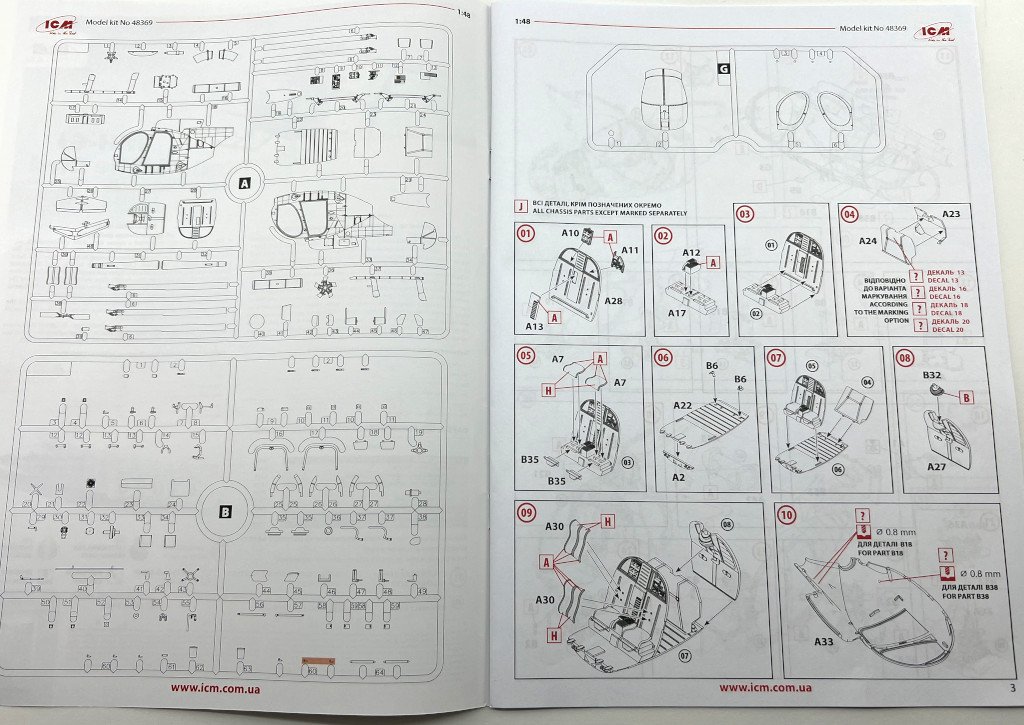 1:32 ICM Hs 123 A-1 (Late) Ref: 32015 Introduction ICM continues its dynamic and steady pace of monthly releases, either introducing brand-new kits or, as in this case, a new version of the 1:32 scale Hs 123A, originally launched in 2024. This time, we have the “late” version of this iconic German biplane, which explored and developed the concept of dive bombing. Equipped with a large, bulky fixed and faired undercarriage, it was capable of operating from poorly prepared airfields — a reflection of the aeronautical thinking of the time. A biplane with an open cockpit, reminiscent of the Soviet I-153. One of its construction innovations was its fully metal fuselage and wings, which increased its survivability on the battlefield in case of damage. Its baptism of fire occurred during the Spanish Civil War, and despite its outdated design, it remained in service with the Luftwaffe until late 1944. It was also supplied in small numbers to Nationalist China, where it achieved some success against Japanese forces. What’s in the box Inside ICM’s typical cardboard box, we find a transparent plastic bag containing 9 grey sprues and one with the clear parts, totalling 201 pieces. Also included are an A4 instruction manual with 20 pages, a decal sheet, and a leaflet showcasing the colour range offered by ICM. Overview of all grey sprues Let's then check the sprues! Sprue A This sprue provides the fuselage halves, including the upper gun cover. It features scale-appropriate detailing, with well-fitted gun fairings and finely moulded, realistic cooling and exhaust grilles. Sprue B This sprue contains the two halves of the upper wing. The lower half includes slots to fit the outer and central struts that secure the wing in place. Sprue C This sprue includes the full-width lower half of the corresponding lower wing, along with the respective upper halves that join with the fuselage. Consistent with the overall design, there is a subtle distinction between fabric-covered and metal panels. Sprue D This sprue provides all the movable surfaces of the model, each composed of two halves. The internal structure detailing is subtly visible across all parts. Sprue E This sprue draws attention to the two halves of the radial engine (BMW 132), with delicate detailing throughout the propulsion subassembly. Separate parts such as exhaust collectors, valve tubes, and triform cowling bracing enhance realism and detail. The engine cowling is supplied in nine parts, which may be assembled closed or left open to display the full engine. Two instrument panels are included, featuring raised detail to simulate instrument placement, later complemented by the decal-supplied panels. The internal cockpit structure is also well represented, even if much of it becomes hidden once the fuselage is closed — but we know it’s there 😊. The pilot’s seat is supplied without seatbelts, so these will need to be scratch-built or sourced from aftermarket sets. Sprue F (x2) These sprues include the parts for the main landing gear legs (comprising a primary and secondary support strut). The gear covers are also supplied in halves. The barrels of the main guns are included, featuring cooling holes (not drilled through), which, once painted, convincingly replicate the original. The offensive armament (four standard bombs or four with extended fuses) is supplied in halves. The main wheels feature fine, scale-appropriate detail. As they are supplied in two halves, the tyre tread will need to be redefined after assembly and are presented without “sag” effect. Sprue G This sprue includes some of the most detailed and delicate parts in the kit. Notable elements include the actuators for the ailerons and stabilizers, as well as cockpit levers and buttons. For this area of the model, parts include: Side consoles, with highlights such as the flare pistol Control sticks Oxygen bottle The control stick is particularly reminiscent of the iconic Spitfire. The engine exhaust manifold are also provided, already moulded with open ends — requiring only suitable painting to simulate the openings. Sprue H This sprue provides the windscreen in a single piece and the navigation lights for the wing tips. Decals The decal sheet includes markings for the four available versions, as well as service stencils. as standard they are well printed, with sharp colour and detail. Instructions In line with ICM’s usual quality, the instructions match the overall standard of the kit: Glossy paper with full-colour painting and marking profiles; 20 pages, with the build process divided into 71 steps; Clear and easy-to-follow assembly diagrams, leaving no doubt about part placement; Version options (with or without gear fairings) are clearly marked, along with their corresponding paint schemes; The final page includes a template for cutting masks for the windscreen; Sprues overview cockpit assembly lower wing to fuselage assembly engine assembly complete model with masks template Marking Options Four options are provided, each with historically accurate schemes and varying levels of painting complexity: Hs 123A-1, II.(Sch)/LG 2, 2nd (Assault) Group of the 2nd Training Squadron, France, Spring 1940 Hs 123A-1, Flugzeugführerschule A/B 71, Pilot School A/B 71, Prossnitz, Summer 1941 Hs 123A-1, Erg.St.(Sch.)/LG 2, Auxiliary (Assault) Squadron of the 2nd Training Squadron, Eastern Front, Winter 1942 Hs 123A-1, II./SG 2, 2nd Group, 2nd Assault Squadron, Eastern Front, Spring 1944 Conclusion This second edition of the kit showcases the quality we’ve come to expect from ICM. Despite its scale, it’s not an overly complex kit, and it avoids being overloaded with tiny parts and sub assemblies that demand excessive build time. Details such as the well-appointed cockpit — with side consoles, instrument panels, and internal structures — and the multi-part engine, which is impressively realistic at this scale, contribute to the overall appeal. The four marking o