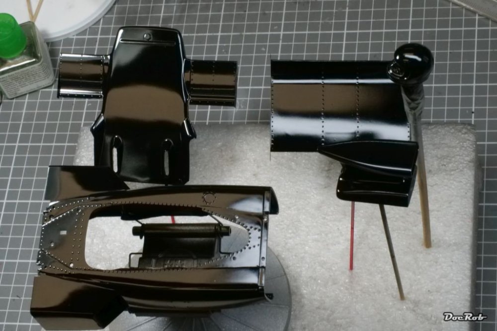 Thanks Mike, I hope the best for the nose section. The body parts fit so far with the nose, but I have to see, how it works with the innards. I will use Tamiya LP1 as gloss black. Actually I started with it, but have some tiny runners on the body and have to wait until it´s completely cured, before I sand again. Companies like Zero or Number Five sell different Lotus blacks for different types, weird. Cheers Rob -