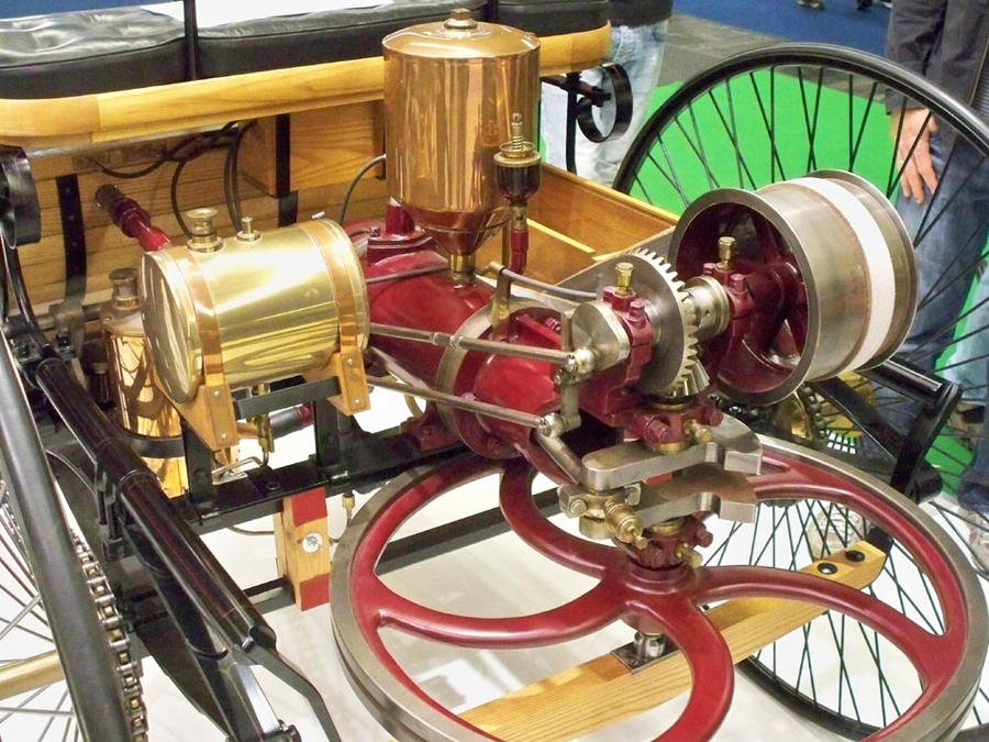 I've had a life-long interest in small engines of all types; steam, Internal combustion, stirling cycle, and flame licker. Well recently, I got a little hit & miss engine for a gift. I posted a pair of pics of this in the "What did you just get" thread. Like I said these little engines are fun to work with. I initially had trouble with compression and discovered that the intake valve was leaking. I took the head off the engine and used Novus plastic polish to lap in the valves. After reassembly, I found the compression much improved. I also found out, from a You Tube video that this engine runs better with the oil filler cap on the crankcase removed...odd. I will later simply re-drill the vent hole in this cap a little larger. This engine runs well using Coleman lantern fuel (naptha) mixed with a bit of Marvel Mystery Oil. The instructions state using 95 octane gasoline. I don't recommend this. Gasoline can contain ethanol, and other additives that may harm the engine. Besides Gasoline is more dangerous and smelly than the Coleman fuel . This fuel is the same stuff as Zippo lighter fluid BTW (the Coleman fluid is a little better quality). Anyway, I now have two of these hit miss engines now. The first one , a M90 I've had for years. It's a bit beat up now, but still runs great. This second one , I plan to alter its governor so that it runs slower. The term hit & miss refers to way these engines are governed. The governor prevents the engine from firing unless it is below a certain speed giving them a strange clunk-clunk-clunk sound while running. I have another engine on the way. A running model of the engine from Karl Benz's first car😀 I added a video of my M90 Engine running😀