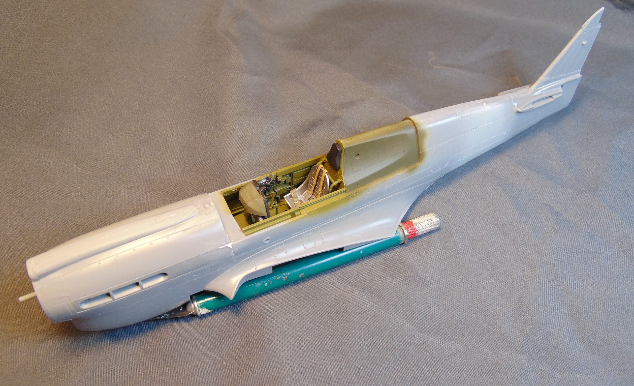 23. Ready for perusal. This is the OLD Monogram kit that has been in my stash for YEARS. Finally decided to build it. A easy build with few problems. The only after market stuff is the belts which I scrounged from my PE seat belt stash. Painted with MCW GSB enamel, Alclad Duraluminum, and Testor's. Markings are from Repli-Scale and Super Scale. I added BB's in the nose section so it wouldn't be a tail sitter. I hope you like it (I do!). PS- I broke the gun barrels off early on and forgot to replace them when I took some of the photos. At any rate, they are in place now.