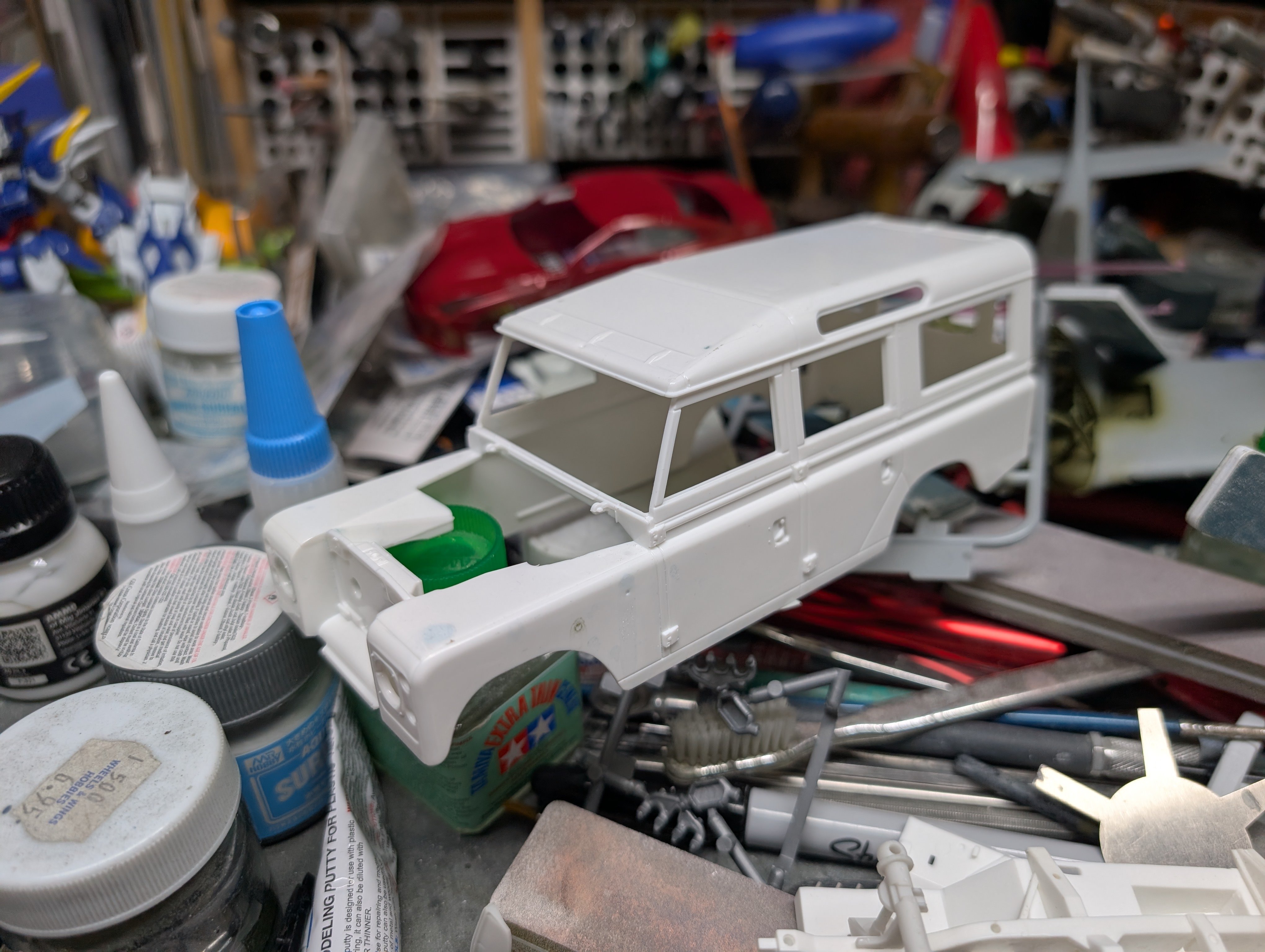 More work on random started models that are on my bench. This time it was fitting the chassis to a Land Rover Defender. I'm using the recent Revell kit with a conversion from C1 Models The stock body: The conversion one. Hopefully when I'm done, it'll look something like this. -