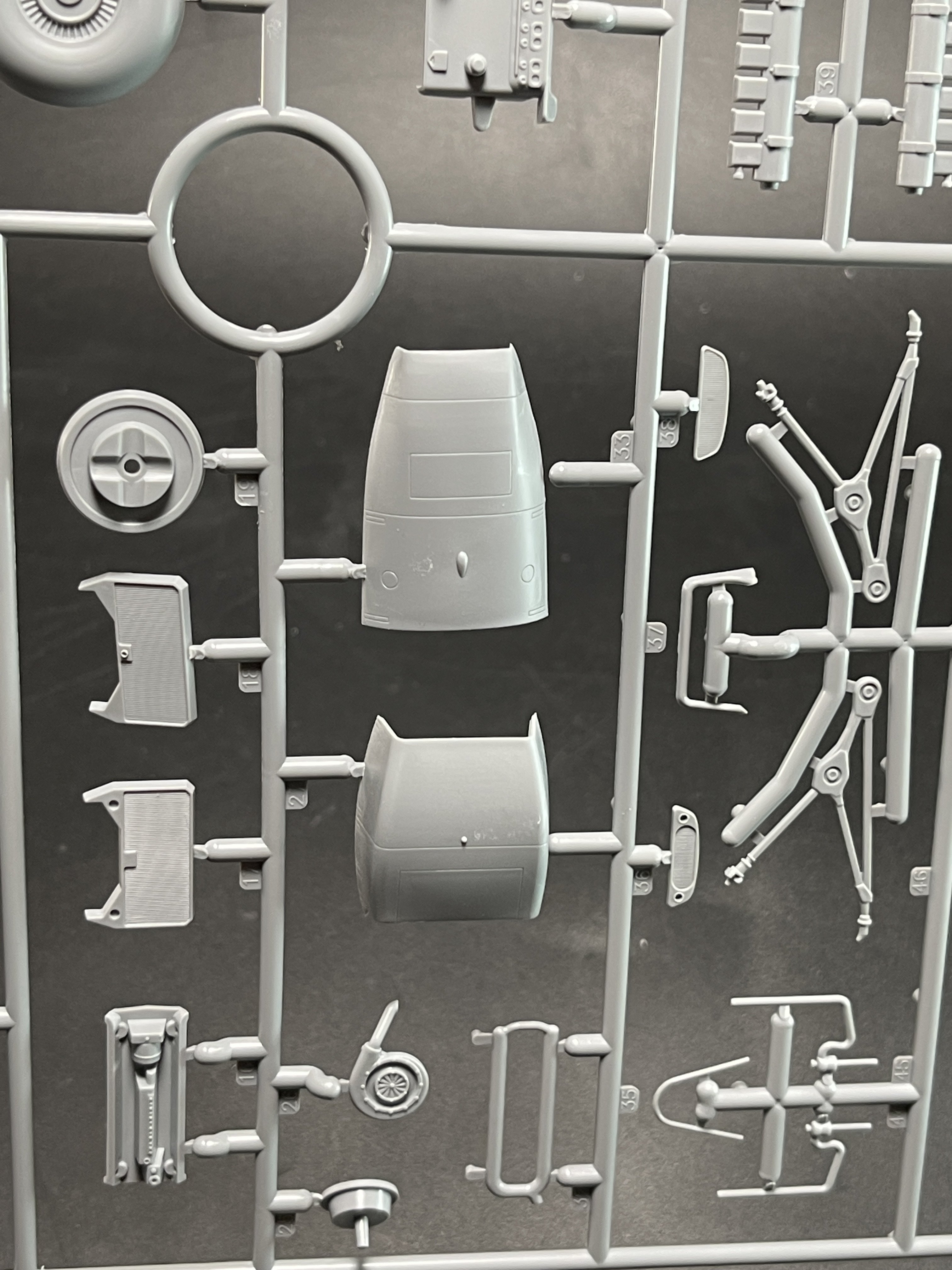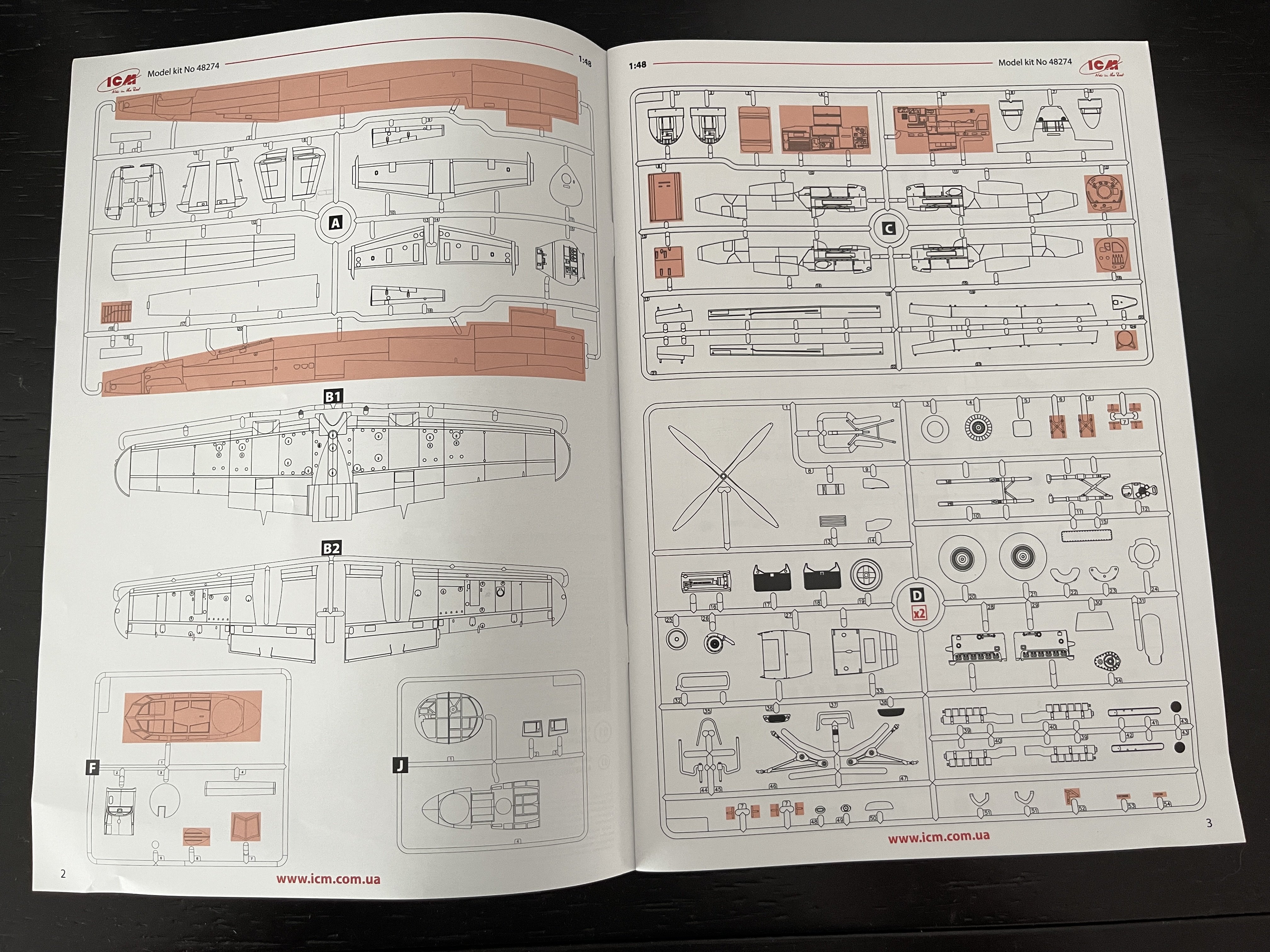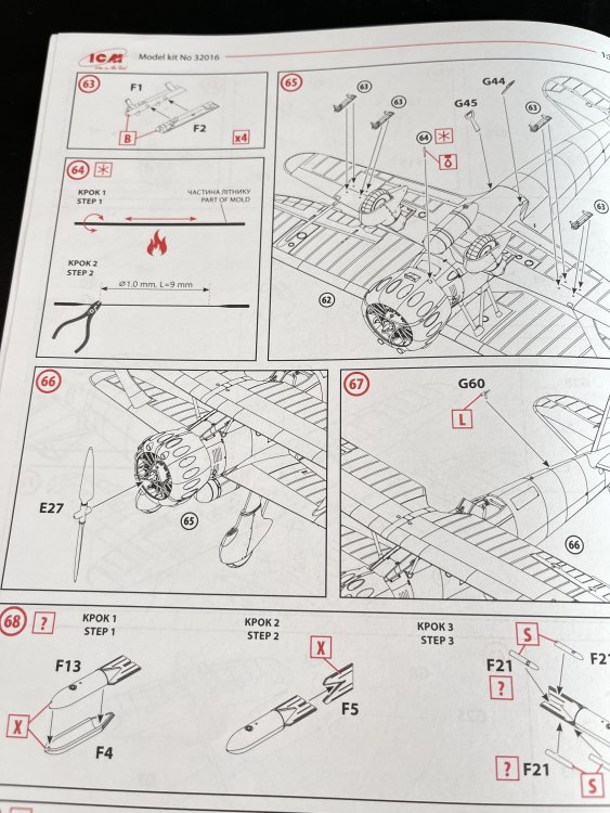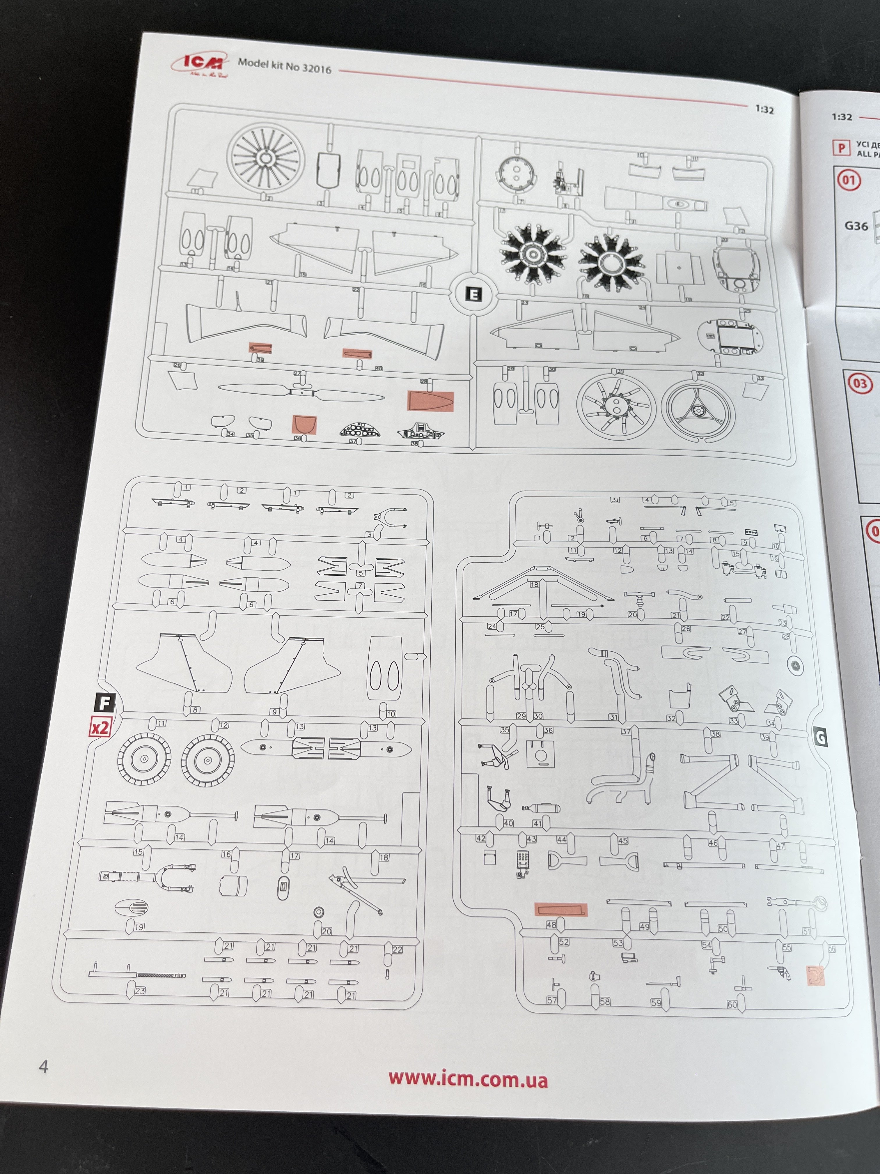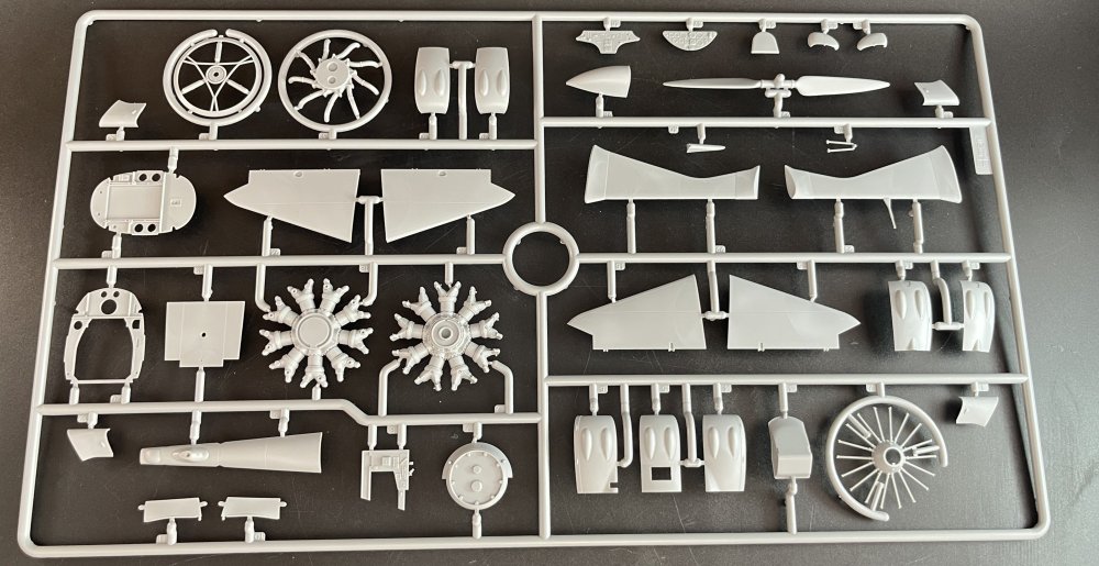 1:48 B-26F Marauder ICM Catalogue number 48325 Price: around 70€ “The Glenn L. Martin Company's Model 179 answered a January 1939 Army Air Corps specification for a high-speed bomber. The Army ordered the streamline twin-engine, all-metal monoplane, designated the B-26 Marauder, in September and the first production example flew in November 1940. The design incorporated several new innovations. The high wing loading of the design and the resultant increased landing and take-off speeds caused many accidents in training. Intimidating epithets such as the "Widow Maker" and "One-a-Day-in-Tampa-Bay" added to the B-26's initial reputation as it underwent Congressional scrutiny. As those problems were being resolved, Marauders immediately went into combat after American entry into World War II. On June 4, 1942, Army Air Forces (AAF) Marauders defending Midway Island attacked Japanese aircraft carriers with torpedoes, but failed to score hits. The AAF sent Marauders to North Africa after the Allied invasion in November 1942 for service with the Twelfth Air Force. Eighth Air Force B-26s flew the first bombing mission against German forces in Europe on May 14, 1943. In preparation for the invasion of France, the Eighth's Marauders were transferred to the Ninth Air Force, the primary American tactical air force in Europe, in October 1943. Like the M1 Garand combat rifle, the Sherman tank, and the LST, the Marauder was an important weapon in the war against the Axis powers. B-26 crews flew over 100,000 sorties and dropped approximately 150,000 tons of bombs, primarily against Nazi Germany. The AAF lost fewer Marauders than any Allied bomber it flew—less than one-half of one percent. Besides the United States, the air forces of Great Britain and France operated Marauders in combat. Few Marauders survive today out of the 5,266 produced by Martin. *History from National Air and Space Museum. Just a brief history for a very well know aircraft. ICM Model released the 1:48 B-26F Marauder (kit number 48325) in 2025 as a follow-up to their very well-received 2024 B-26B kit (48320). This is essentially a rebox with new parts to capture the F variant's specific features, such as the adjusted wing angle and modified nose. We also review already the G version. You can see it here. And as for the G version, the F version also have the same ergonomic wing incidence. The early versions of this model exhibited landing and take-off characteristics that resulted in a high rate of accidents during these phases of flight. To reduce the landing and take-off speeds, the wing incidence was increased by 3.5 degrees. This modification lowered the landing and take-off speeds, but at the expense of maximum speed, which was reduced to 277 mph. Another significant change was the standardization of internal equipment, thus creating the “G” version of the B-26. The last of the 1931 B-26G units left the production line on 30 March 1944. Economic concerns and the reputation created by the early versions of the B-26 (nicknamed the “widowmaker”) led to the abandonment of this model and its replacement largely by the A-26 Invader, which had greater range and speed. Meanwhile, for example, a B-25 had 25% lower production cost. Externally, the B-26F is nearly identical to the B-26G. The main difference is that B-26G featured more standardized interior equipment compared to the B-26F. So, both models sprue are identical. Sprue A1 includes the fuselage with modifications to the wing angle (which differs from earlier versions). Others close details of the tail. And the inside halves of the fuselage: Similarly, sprue K1 provides the specific parts for this version, featuring spars for attaching the wing root, a new instrument panel, and the wheels' rims for the landing gear. Sprue H1 supplies the specific plexiglass nose for this version. With a wingspan of about 454mm, when assembled, it's a substantial model that replaces outdated offerings like the 1978 Monogram kit, which suffered from fit issues and limited detail. The usual ICM flip top cardboard with a separate card lid showing the artwork. featuring eye-catching artwork of a B-26F in action. Inside you have sprues separated in two plastic bags and the clear parts in another bag and full protected. You'll find around 380 plastic parts (up from 348-363 in the B-26B kit, accounting for variant-specific additions), molded in gray styrene with two clear sprue for canopies and windows. Parts are bagged separately to prevent damage, with the clear pieces protected by foam for excellent clarity and no scratches. The sprues are cleanly molded with minimal flash and sharp, narrow panel lines representing rivets and fasteners—far superior to the raised details on older kits like Monogram's. The plastic is soft and flexible, which is a mix felling as it which helps prevent breakage of delicate parts like antennas and gun barrels, but I used Deluxe Materials in a current ICM model that I making and the glue melt part of the plastic… So try to use a “delicate” glue on this plastic. The interior with separate bulkheads, crew access doors (via the nose wheel well), and a fully equipped bomb bay that can be posed open or closed with inserts is quite good from the box. Cockpit features like instrument panels and seats are crisp, but aftermarket boys are already making their patch offering excellent options to ultra realism of the B-26 cockpit, at least of the B version. Check Essentials Elements sets on facebook. The engines detail looks quite good. No doubts a very good effort have being made in giving a nice looking detail engines on this one. Kudos engine. To make it almost perfect in this scale you just need to add some wires. The clear parts, as usual are pristine and very clear with no distortion at all. The usual standard from ICM with a booklet with the first and last page in satin paper and the rest in normal paper. The color table chart only have ICM paint range and it