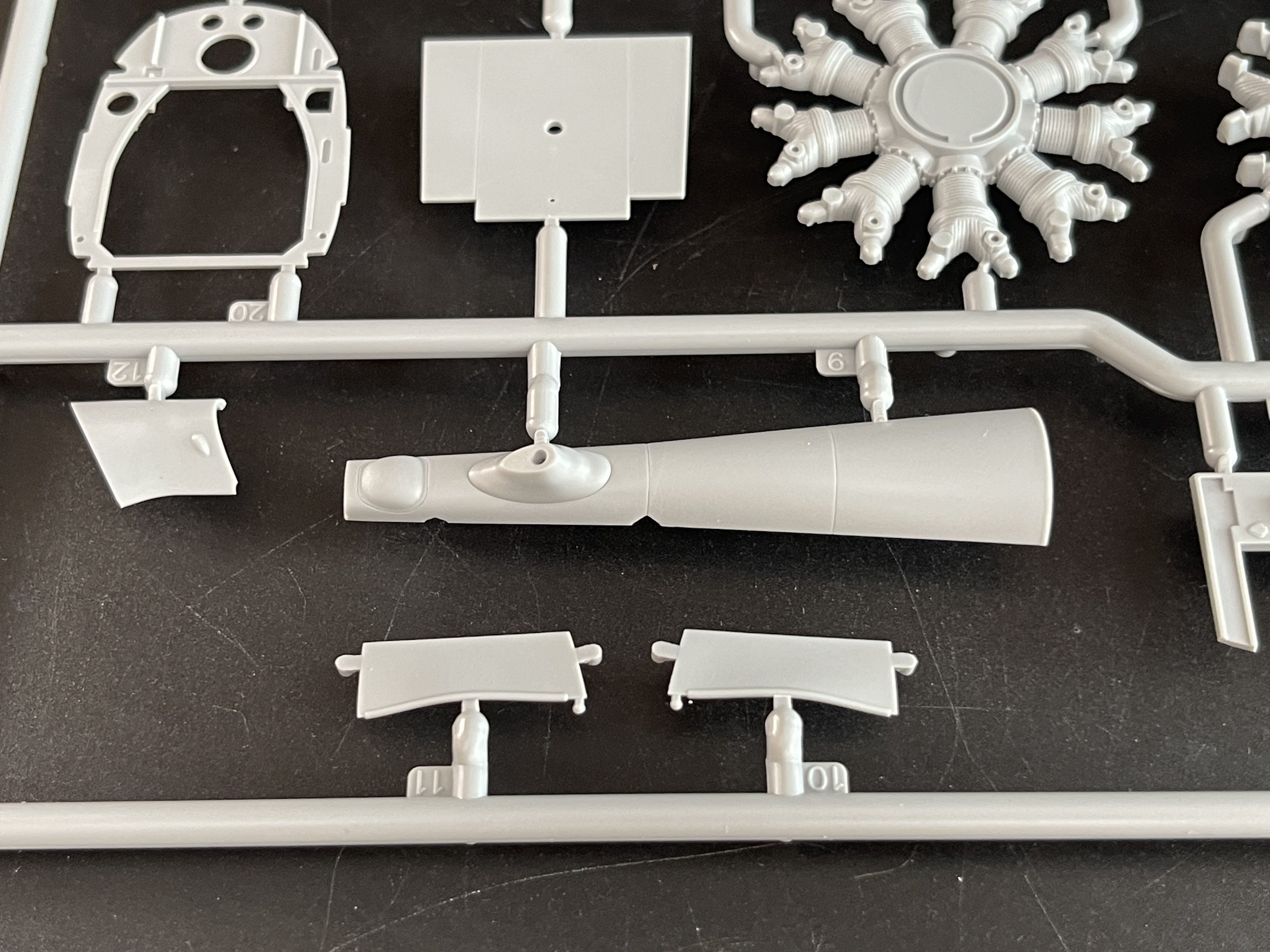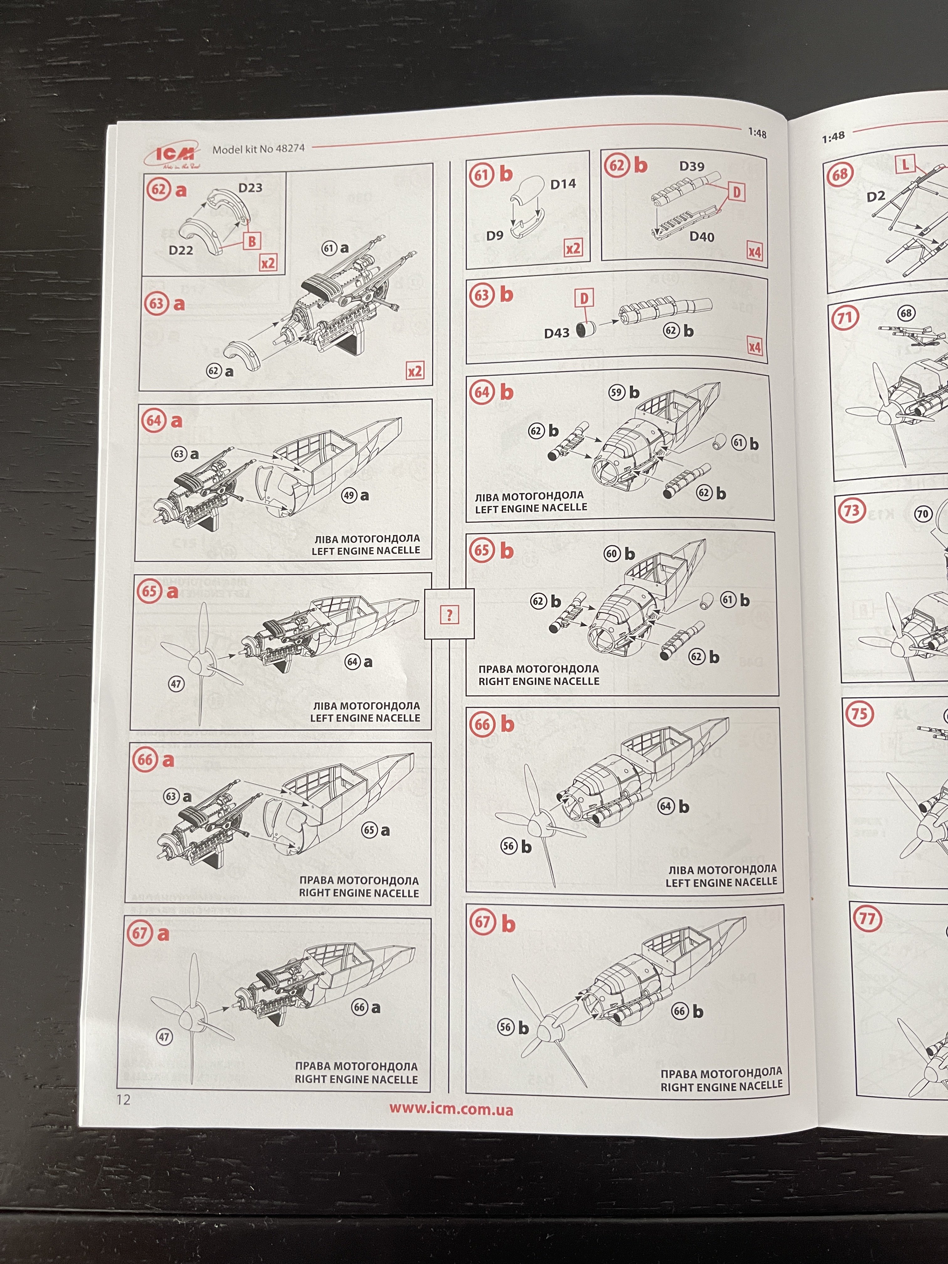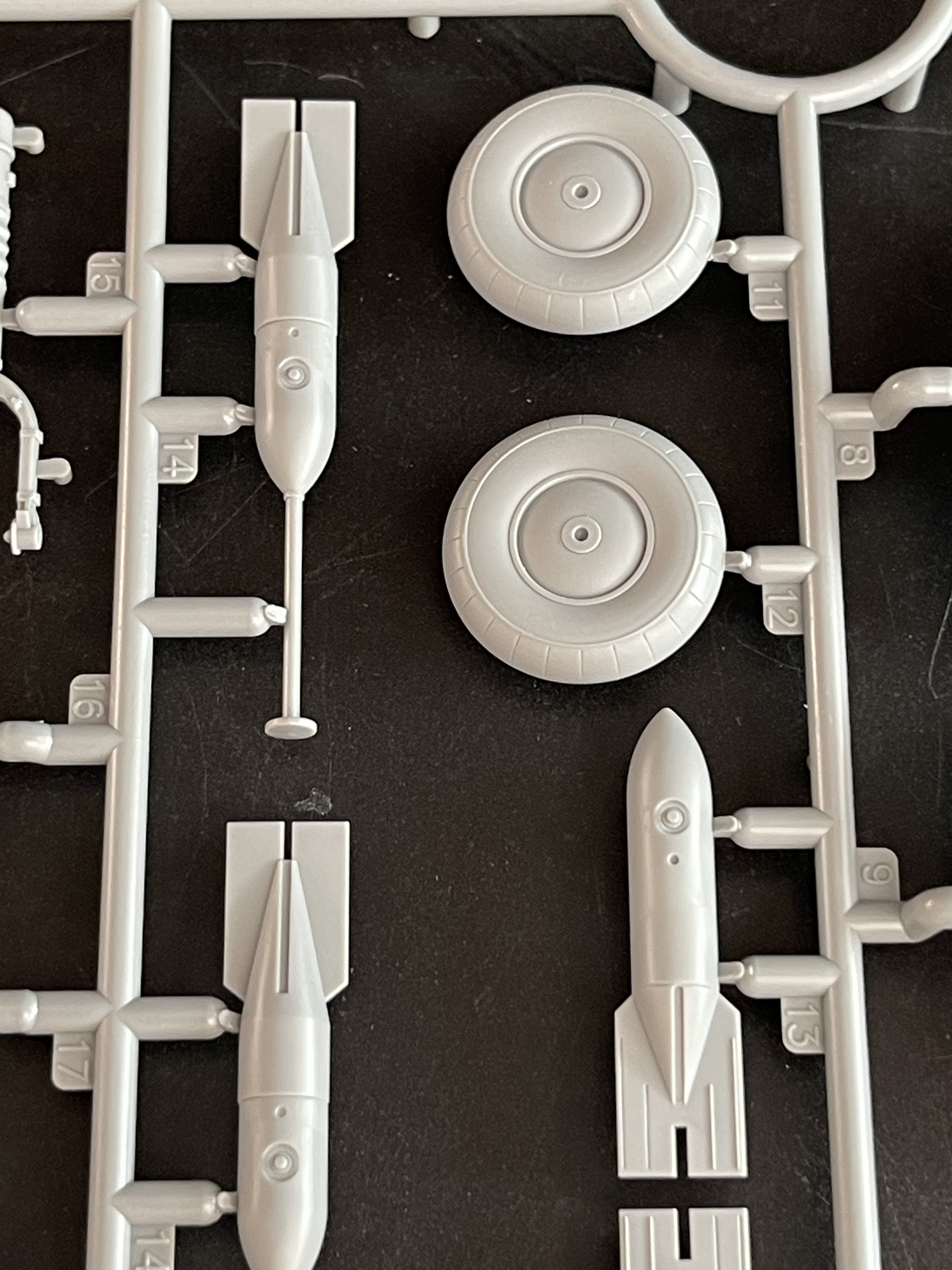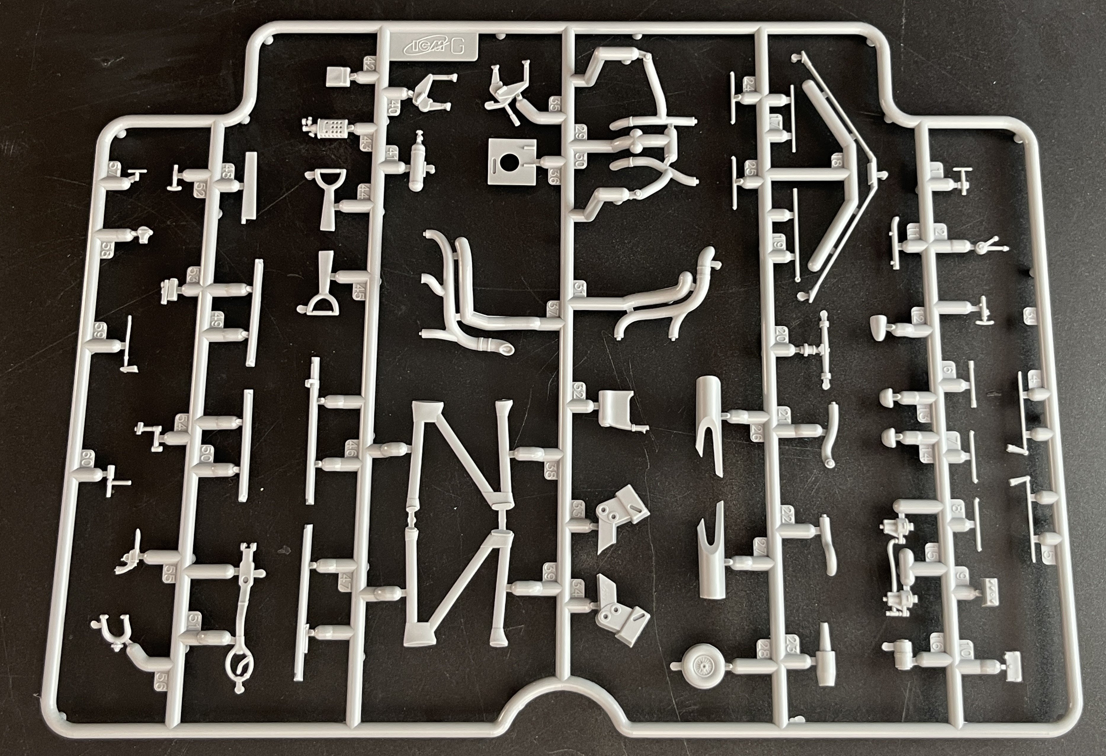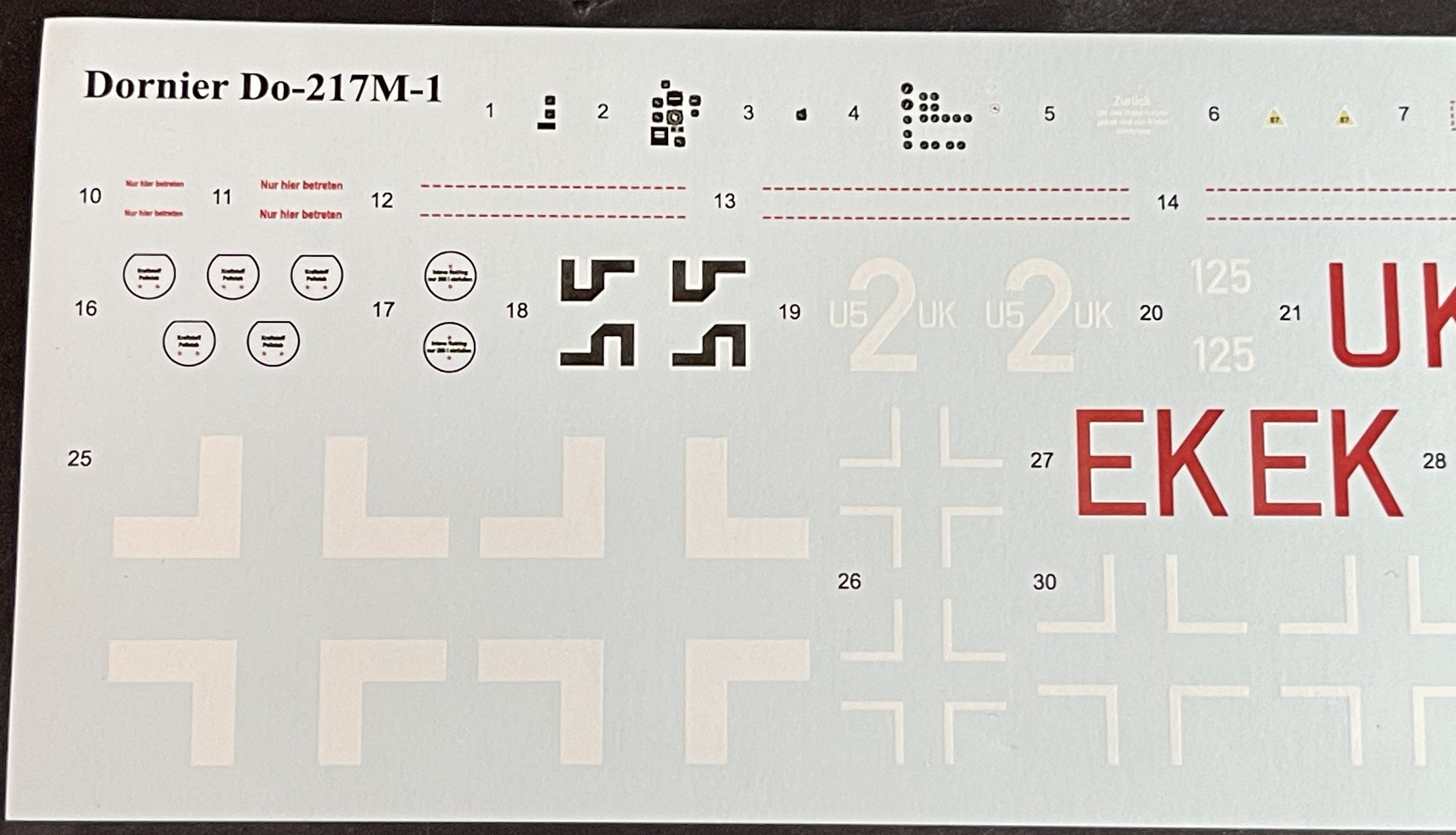 1:48 Dornier Do-217 K-1 ICM Catalogue number 48273 Price: around 64,95€ The Dornier Do 217 K-1 was a German medium bomber developed during World War II as part of the broader Do 217 series, which evolved from the earlier Dornier Do 17, known as the "Flying Pencil" for its slender fuselage. The Do 217 K-1, introduced in the autumn of 1942, represented a significant advancement over its predecessors, incorporating a redesigned, aerodynamically streamlined nose and cockpit to improve performance. The Dornier 217 K-1 was a German WWII era medium bomber, developed from the previous Do 217 E medium bomber series. Unlike the previous Do 217 E, the Do 217 K-1 nose and cockpit was redesigned and aerodynamically streamlined, resulting in lower drag and higher speed. The crew of five was sitting inside the new fully glazed canopy. Compared to the Do 217 E the defensive armament was redesigned as the forward firing 7,92 mm MG 15 machine gun was replaced by twin MG 81 7,92 mm machine gun and the rear facing MG 15s were replaced by a single mounted MG 81. The offensive armament was removed. Maximum bombload of 4000 kg of bombs either in bomb bay or on external racks under the wings remained unchanged, although a single SC 1800 bomb could now be carried inside the bomb bay. The first Do 217 K left the factory in September 1942 and served throught the war as night bombers and against enemy shipping. The Do 217 is faster than most of other bombers it will meet in battle, being capable of taking out up to four bombing points when utilizing the Flamm C250 incendiary bombs or up to four bases utilizing the four SC 1000 bombs, depending on the maximal battle rating of the said match. Do 217 K is also very capable due to its heavy bomb load and the powerful SC 1800 bomb containing 1000 kg of TNT eq. and 30 metres wide destruction radius. Do 217 can also be used in naval battles as it comes equipped with a pair of F5W torpedoes with 3 km range and 300 kg TNT eq. However these might prove hard to use as the Dornier have to slow down to sub 301 km/h making it an easy target for the naval gunners. Despite being a bomber, the Dornier is also quite maneuverable with maximal structural limit being 700 km/h.[1] Just a brief history for a very well know aircraft. So, let`s crack the box to check one of the most wanted and eagerly awaited model of the year of ICM catalogue. The usual ICM flip top cardboard with a separate card lid showing the artwork. I like ICM artbox, they are quite good. Not my favorites but I like them. Inside you have sprues separated in two plastic bags and the clear parts in another bag and full protected. Opening the box, you get a total of 13 gray branches and two clear branches. The clear parts are individually packaged in protective bags. There is a lot of parts in this box that you will not use. The C and D sprues you will use less the 30 % of it. There are also same parts for the night version, that I check the instructions of it (as I don’t have the J version). Is the sprue H for engines, cowlings, and propellers is exactly the same for their radial engines. But let’s check it all. The first big thing here is the clear parts. This version has its one clear parts (the sprue J) as that is obvious considering the huge front gondola and the upper canopy is also new. The clear parts are perfect! Even in this shape… As usual are pristine and very clear with no distortion at all. Sprue K is also completely new and brings the two new fuselage halves as the largest parts, including parts for the interior, the armament and the fuselage tail. As we have both fuselage for the night fighter and this version, we make a little comparation. As you can see, the new fuselage is shortened at the front to accommodate the new full glazing, and the rear can be equipped with two different versions. You get both fuselages. It’s a totally new mold for the fuselage. Kudos to ICM The cockpit is quite big and there’s a lot of glazing to see inside. So, straight from the box, you can get a good cockpit detail has you have in the box side consoles, small instrument panel with three-dimensional components. So, with some work, the decals and some carefully painting you can get a great cockpit straight from the box, excepted for the seatbelts. As usually, for the seatbelts you need to use some aftermarket seatbelts. The sprue W gives 500 and 250 kg bombs very well detail. Passing on a first general view, is a typical ICM quality plastic, with no distortion, no flash, with very good surface detail. On sprue A, the fuselage halves and tail. Well on this release, these fuselage halves are not used. Sprue B On this sprue, full span wings, with upper and lower halves. Really nice molding. A rivet counter could have some extra detail. Sprue C Mostly all parts on this sprue will not be used. This model will give a lot of extra parts to your spare box. So just a few parts of the undercarriage bay. Sprue D Two sprues in fact, with all the parts for the engine DB603A, propellers and engine nacelles, nothing used on this version that wear the BMW 801D (both with 1700hp each). Well, on this model kit, only the wheels, landing gear are the only parts to be use. Sprue E This sprue brings us the flaps, upper turret (and all its details) instrument panels, side cockpit consoles and undercarriage bay. As for the side cockpit consoles, will not be use as the cockpit detail for this one is on the new K sprue. The instrument panels are quite good in raised detail and you have a decal set for the instruments bazels. Sprue G It supplies the engine mounts and undercarriage fairings. The night fighter nose cone is no needed for the build. The instructions. The usual standard from ICM with a booklet with the first and last page in satin paper and the rest in normal paper. The color table chart only have ICM paint range and it start to make some sense (at least in Europe) as you start to have some online store that sell them as Art Sc