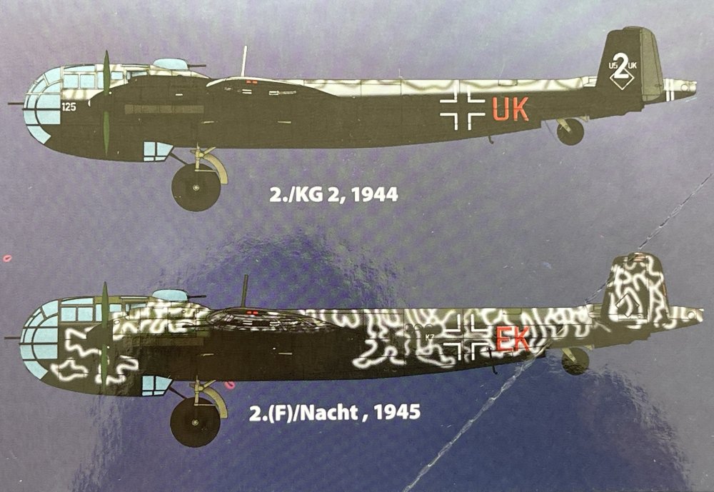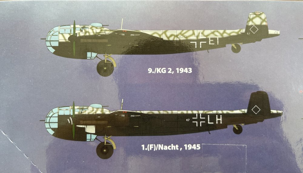 1:48 Capture Heinkel ICM Catalogue number 48268 Price: around 47€ “The Heinkel He 111 is a German airliner and bomber designed by Siegfried and Walter Günter at Heinkel Flugzeugwerke in 1934. Through development, it was described as a "wolf in sheep's clothing". Due to restrictions placed on Germany after the First World War prohibiting bombers, it was presented solely as a civil airliner, although from conception the design was intended to provide the nascent Luftwaffe with a heavy bomber. Perhaps the best-recognised German bomber of World War II due to the distinctive, extensively glazed "greenhouse" nose of the later versions, the Heinkel He 111 was the most numerous Luftwaffe bomber during the early stages of the war. It fared well until it met serious fighter opposition during the Battle of Britain, when its defensive armament was found to be inadequate. As the war progressed, the He 111 was used in a wide variety of roles on every front in the European theatre. It was used as a strategic bomber during the Battle of Britain, a torpedo bomber in the Atlantic and Arctic, and a medium bomber and a transport aircraft on the Western, Eastern, Mediterranean, Middle Eastern, and North African Front theatres. The He 111 was constantly upgraded and modified, but had nonetheless become obsolete by the latter part of the war. The failure of the German Bomber B project forced the Luftwaffe to continue operating the He 111 in combat roles until the end of the war. Manufacture of the He 111 ceased in September 1944, at which point piston-engine bomber production was largely halted in favour of fighter aircraft. With the German bomber force virtually defunct, the He 111 was used for logistics. Production of the Heinkel continued after the war as the Spanish-built CASA 2.111. Spain received a batch of He 111H-16s in 1943 along with an agreement to licence-build Spanish versions. Its airframe was produced in Spain under licence by Construcciones Aeronáuticas SA. The design differed significantly only in the powerplant used, eventually being equipped with Rolls-Royce Merlin engines. These remained in service until 1973.he H variant of the He 111 series was more widely produced and saw more action during World War II than any other Heinkel variant. Owing to the uncertainty surrounding the delivery and availability of the DB 601 engines, Heinkel switched to 820 kW (1,100 hp) Junkers Jumo 211 powerplants, whose somewhat greater size and weight were regarded as unimportant considerations in a twin-engine design. When the Jumo was fitted to the P model it became the He 111 H. The He 111 H-1 was fitted with a standard set of three 7.92 mm (0.312 in) MG 15 machine guns and eight SC 250 250 kg (550 lb) or 32 SC 50 50 kg (110 lb) bombs. The same armament was used in the H-2 which started production in August 1939. The P-series was gradually replaced on the eve of war with the new H-2, powered by improved Jumo 211 A-3 engines of 820 kW (1,100 hp). A count on 2 September 1939 revealed that the Luftwaffe had a total of 787 He 111s in service, with 705 combat ready, including 400 H-1 and H-2s that had been produced in a mere four months. Production of the H-3, powered by the 895 kW (1,200 hp) Jumo 211 D-1, began in October 1939. Experiences during the Polish Campaign led to an increase in defensive armament. MG 15s were fitted whenever possible and the number of machine guns was sometimes increased to seven. The two waist positions received an additional MG 15, and on some variants a belt-fed MG 17 was even installed in the tail. A 20 mm (0.79 in) MG FF autocannon would sometimes be installed in the nose or forward gondola. After the Battle of Britain, smaller scale production of the H-4s began. The H-4 was virtually identical to the He 111 P-4 with the DB 600s swapped for the Jumo 211D-1s. Some also used the Jumo 211H-1. This variant also differed from the H-3 in that it could either carry 2,000 kg (4,400 lb) of bombs internally or mount one or two external racks to carry one 1,800 kg (4,000 lb) or two 1,000 kg (2,200 lb) bombs. As these external racks blocked the internal bomb bay doors, a combination of internal and external storage was not possible. A PVR 1006L bomb rack was fitted externally and an 835 L (184 imp gal; 221 US gal) tank added to the interior spaces left vacant by the removal of the internal bomb-bay. The PVR 1006L was capable of carrying a SC 1000 1,000 kg (2,200 lb) bomb. Some H-4s had their PVC racks modified to drop torpedoes. Later modifications enabled the PVC 1006 to carry a 2,500 kg (5,500 lb) "Max" bomb. However 1,000 kg (2,200 lb) "Hermann" or 1,800 kg (4,000 lb) "Satans" were used more widely. The H-5 series followed in February 1941, with heavier defensive armament. Like the H-4, it retained a PVC 1006 L bomb rack to enable it to carry heavy bombs under the fuselage. The first ten He 111 H-5s were pathfinders, and selected for special missions. The aircraft sometimes carried 25 kg (55 lb) flashlight bombs which acted as flares. The H-5 could also carry heavy fire bombs, either heavy containers or smaller incendiary devices attached to parachutes. The H-5 also carried LM A and LM B aerial mines for anti-shipping operations. After the 80th production aircraft, the PVC 1006 L bomb rack was removed and replaced with a heavy-duty ETC 2000 rack, enabling the H-5 to carry the SC 2500 "Max" bomb, on the external ETC 2000 rack, which enabled it to support the 2,500 kg (5,500 lb) bomb. Some H-3 and H-4s were equipped with barrage balloon cable-cutting equipment in the shape of cutter installations forward of the engines and cockpit. They were designated H-8, but later named H8/R2. These aircraft were difficult to fly and production stopped. The H-6 initiated some overall improvements in design. The Jumo 211 F-1 engine of 1,007 kW (1,350 hp) increased its speed while the defensive armament was upgraded at the factory with one 20 mm (0.79 in) MG FF cannon in the nose and/or gondola positi