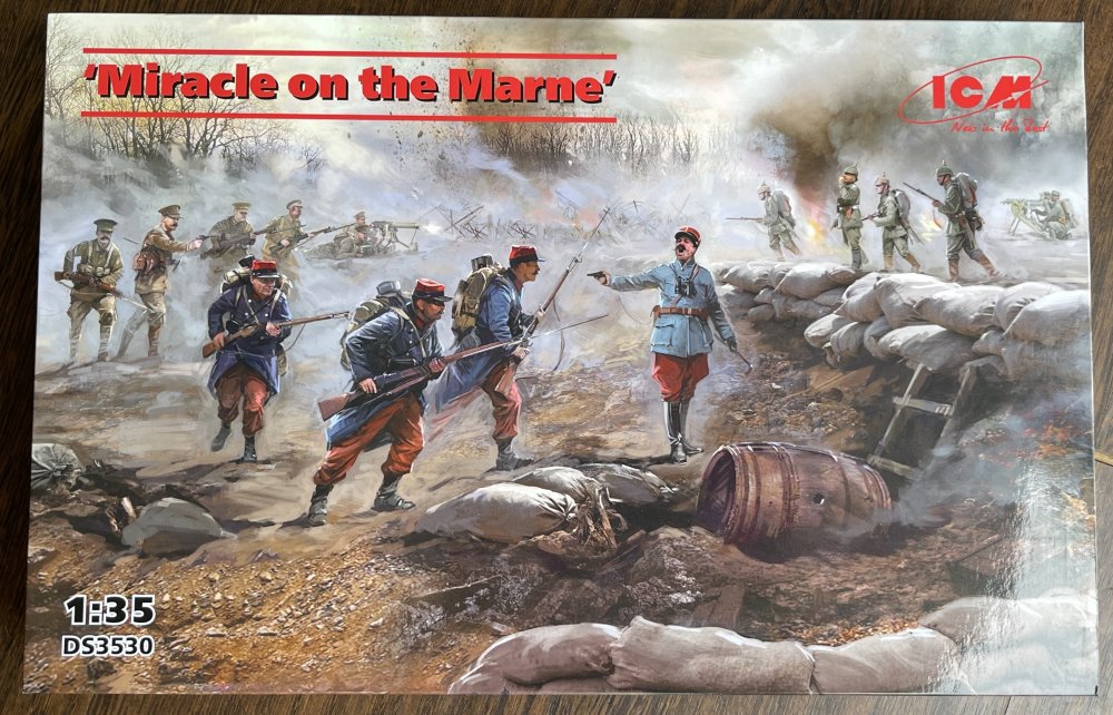 1:35 “Miracle on the Marne” ICM Catalogue number DS3520 Price: around 45€ “The ICM "Miracle on the Marne" is a 1:35 scale diorama set released in 2025 (kit reference DS3530), focusing on the iconic events of the First Battle of the Marne. And what was the Miracle all about? The miracle of Paris not falling to German hands in WWI “Of the continental European powers who went to war in 1914, France probably carried the smallest share of the blame for its outbreak. In the rapidly escalating crisis of that summer, the republic played a largely defensive role. Yet its stake in the ensuing conflict was at least as great as that of any other participant. For France, this was a struggle to liberate its own territory and to recover Alsace-Lorraine, the provinces lost to the hated German occupiers a generation before in the Franco-Prussian War. With approximately 2 million men, the French army dwarfed the British Expeditionary Force (BEF) that was rapidly dispatched to offer support. The British troops were well-trained and equipped – their Lee-Enfield rifles were superior to the standard French issue 1886 Lebel model. British khaki uniforms were also better adapted to modern warfare than the bright blue and red outfits that made the French so conspicuous in battle. But the BEF fielded barely 100,000 men in August 1914. Against the Franco-British coalition were pitched some 1.7 millionGerman troops. The invaders possessed advantages in terms of equipment. German units were issued with effective Mauser Gewehr 98 rifles and had the edge over their opponents when it came to machine-guns, light mortars, and field artillery. Their 105mm and 150mm howitzers would prove deadly killing machines. The decisive encounter – remembered in France as the ‘miracle on the Marne’ – took place along an extended front running eastward from Paris along the River Marne. Here the German war plan stalled, ending its commanders’ hopes of a swift resolution to the war. Yet it also fell short of a conclusive allied victory, and led to the prolonged blood-letting that scarred the Western Front over the next four years. How are we to explain what happened on the Marne? Contrasting commanders The opposing sides’ commanders could scarcely have been less alike. Joseph Joffre, chief of the French general staff since 1911, cut an avuncular figure with his stout physique, white hair, and moustache. Known as ‘Papa Joffre’, the 62-year-old exuded stolidity and reassurance rather than dash and dynamism. His insistence on a regular routine of eating and sleeping reinforced his imperturbable image. Yet appearances were deceptive. Joffre was a master of detail, who always weighed alternatives up carefully, but who knew his own mind. During the war, he monitored his subordinates closely, bombarding them with missives and driving great distances, often at considerable personal risk, to visit them at the front. Here was a key difference with his principal antagonist, Helmuth von Moltke the Younger, chief of the German general staff since 1906. As the invasion got under way, Moltke based himself in Koblenz and then in Luxembourg, 150 miles away from the action in France, and allowed his junior commanders too much latitude. Joffre was capable of great ruthlessness too, sacking commanders whom he judged to be lacking in loyalty or competence, or both, in the wake of the German invasion. As he stated in his memoirs, ‘you can wage war only with men who have faith in their success, who by their mastery of themselves know how to impose their will on their subordinates and dominate events’. Joseph Joffre, chief of the French general staff (above), and Helmuth von Moltke the Younger, chief of the German general staff (below). The two commanders could scarcely have been less alike. By contrast, Moltke exhibited a fatal lack of self-confidence. He owed his promotion to a personal connection with Kaiser Wilhelm II and was unable to live up to the legend of his famous uncle and namesake, the Elder Moltke, victor of the German wars of unification in 1864-1871. Under pressure, he would soon suffer a career-ending nervous breakdown. Sir John French, commander of the BEF, divided professional opinion both in his lifetime and after. Undoubtedly brave and popular with his men, he was also emotional, inattentive to detail, and without clear and consistent strategic vision. A cavalry commander of genius, he lacked many of the key qualities required of a senior leader at a time of grave crisis. His touchiness, combined with perhaps excessive caution, made him a difficult partner for Joffre. In addition, the BEF remained organisationally independent, with instructions to cooperate with the French but to consult London before embarking on offensive action. Reality bites How did the belligerent parties converge on the Marne? Germany followed the broad outlines of the Schlieffen Plan as soon as war broke out, but with critical modifications. Schlieffen’s blueprint may well have been incapable of delivering victory right from its conception, as it expected German forces to maintain momentum on dangerously extended supply lines. Late changes made failure a near-certainty. The advance through France was weakened by the transfer of some troops eastwards to meet the Russians, who were mobilising more rapidly than anticipated. The German right wing, which was meant to sweep along the Channel coast to encircle Paris, was also denuded of troops to deal with unexpectedly strong Belgian resistance. In the first month of the war, the German army lost 265,000 men killed, wounded, and missing. The survivors were approaching exhaustion after their rapid advance through the summer heat. These setbacks gave time for the BEF to deploy. If German plans did not work out as anticipated, neither did the preparations of the Entente. French military thinking was based on Plan XVII, devised by Joffre. It embodied the concept of the offensive, to which most 