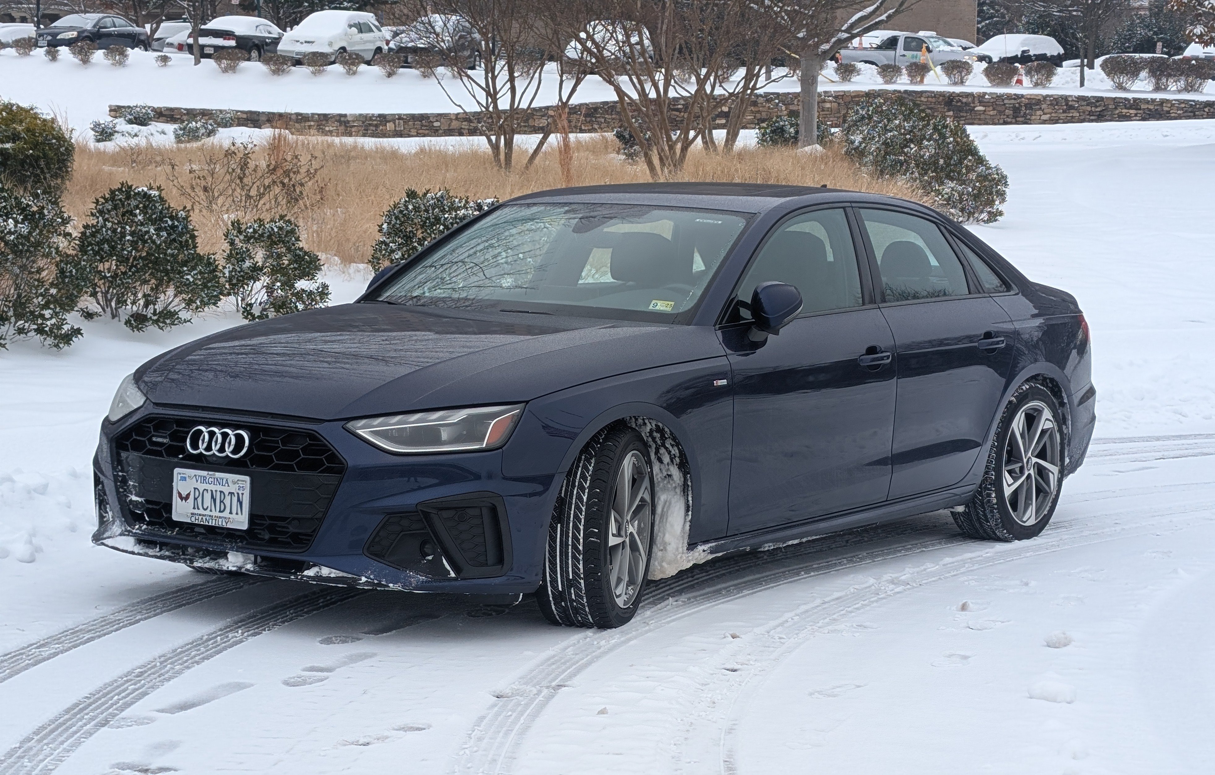 Got tired of shifting (kinda) but mostly just the boy-racer thing with the WRX so traded it in. Got this 2021 A4 with only 24k miles on it. $10 + the WRX. Here's the thing, it is nearly half a second quicker 0-60 and has about the same top-end as the Subie. SOO much more comfortable and has all the modern car features (Apple Carplay and Android Auto) including excellent lane control and adaptive cruise control. On the highway and even around town I get in the mid-30s MPG. It is what Audi call a Mild Hybrid Electric Vehicle with a 12V electric system to assist the engine at starting, low speeds and cruising. From last winter...