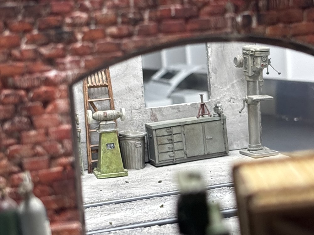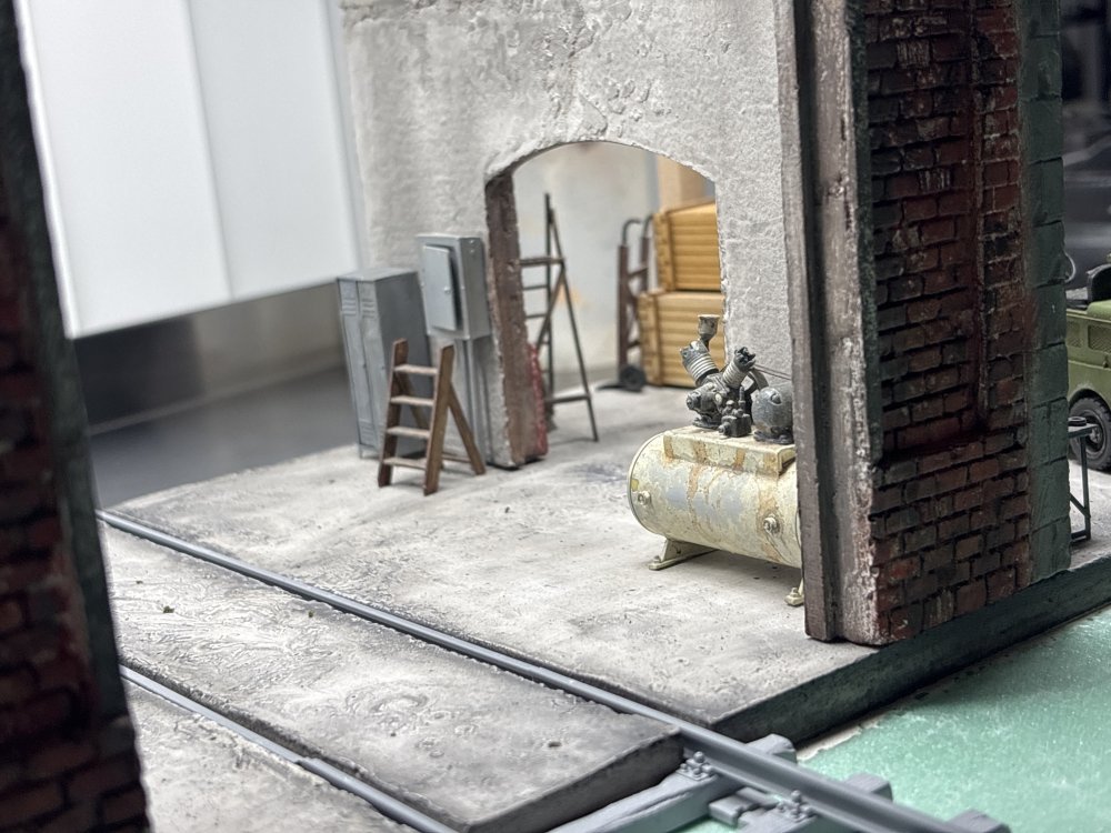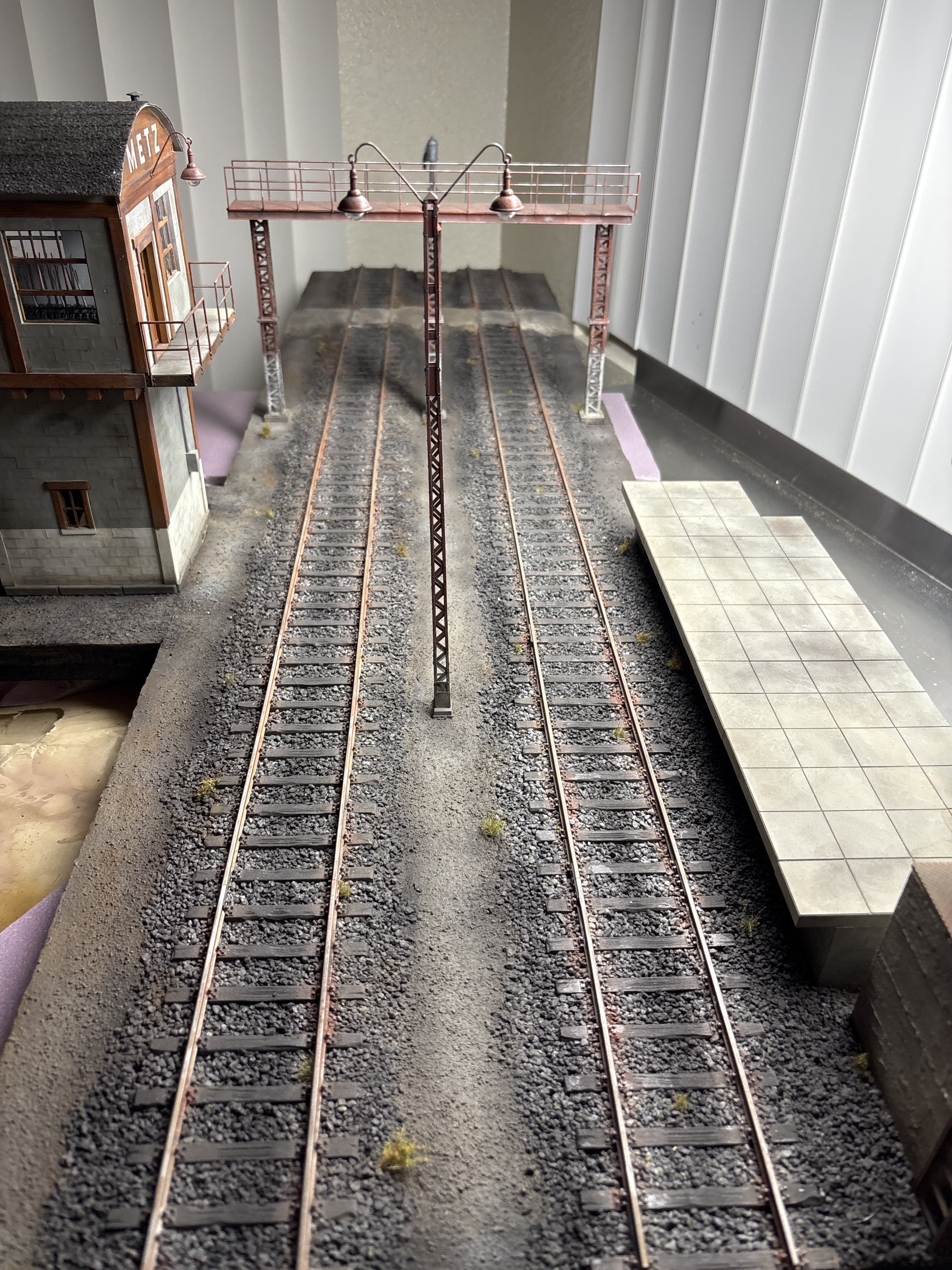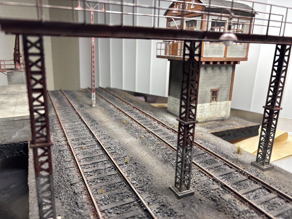 Changed position of the switch tower. Going to add ladder to switch tower. Still working on rail cars. Been working on several dioramas. What can I say. I bore easily.