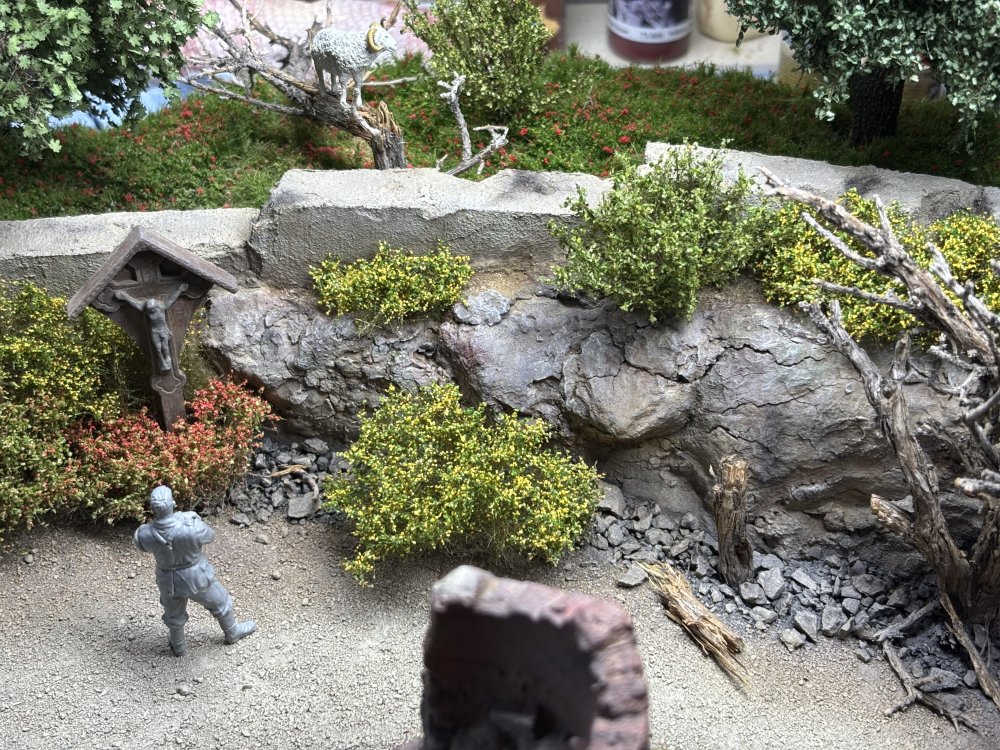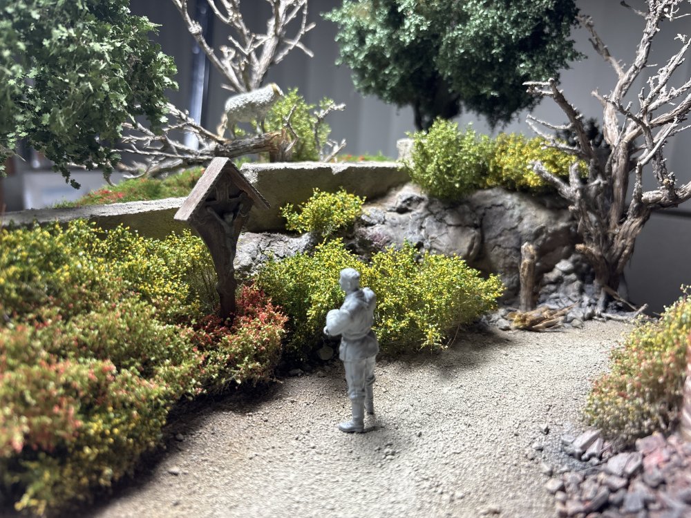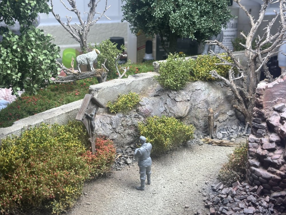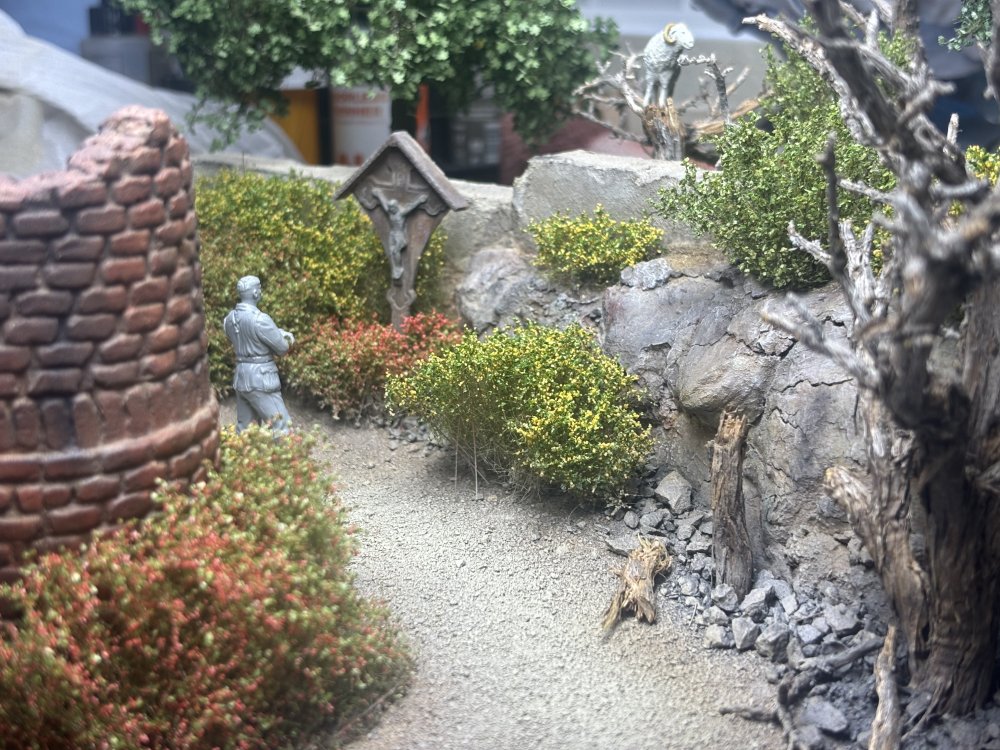 Changed position of the switch tower. Going to add ladder to switch tower. Still working on rail cars. Been working on several dioramas. What can I say. I bore easily.