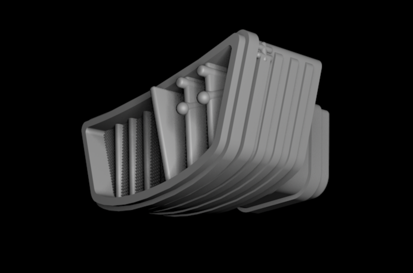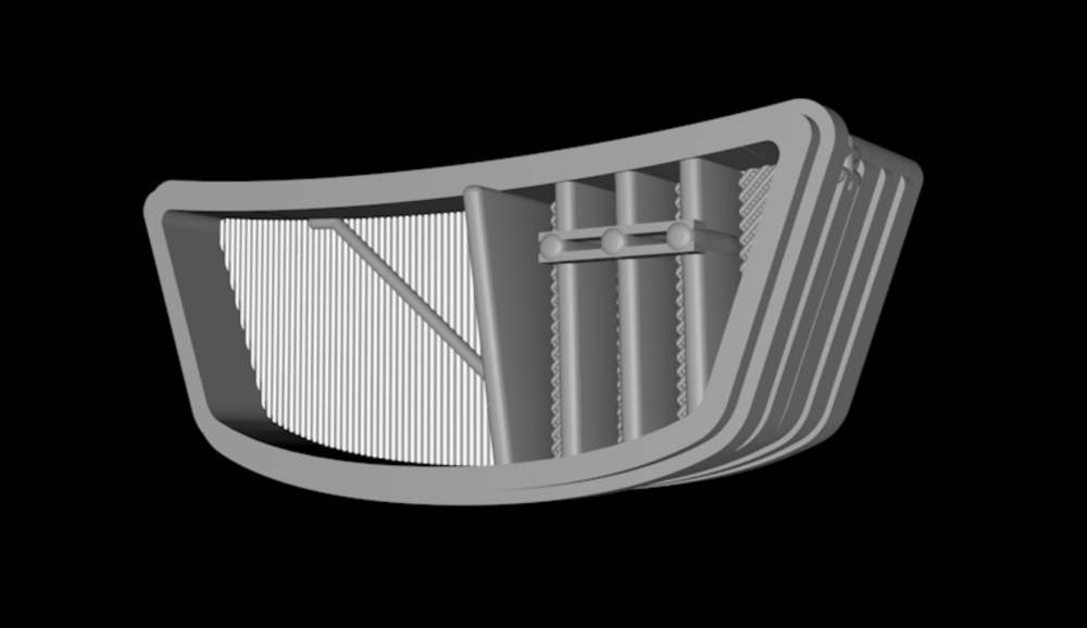 Final part for the engine. The radiator. There are many different designs for this part. Most of them show a protective casing around it, making it less interesting to look at. -