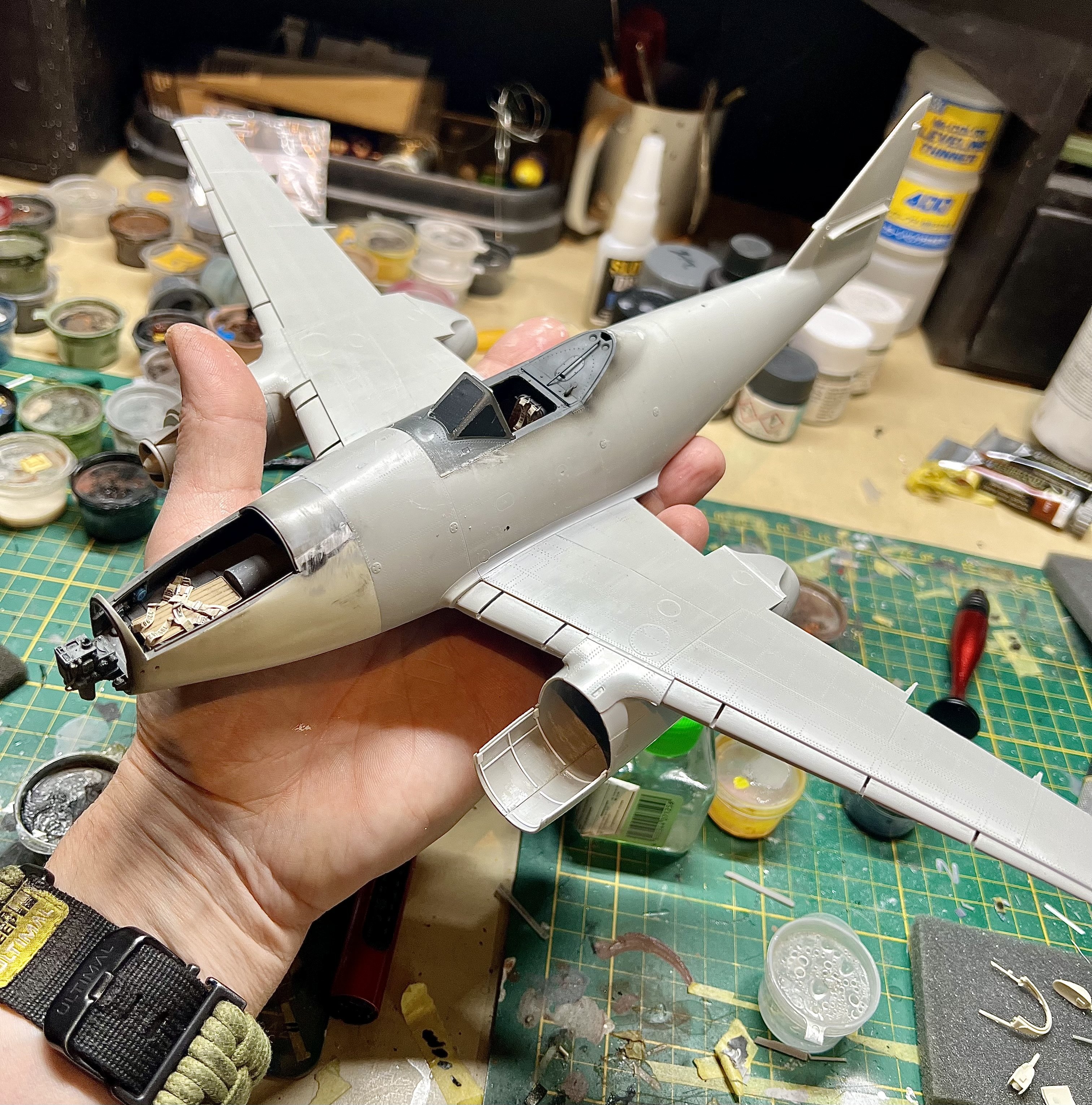 Started cutting resin on the Aires cockpit for the ju-87D. Warped like a banana. But nothing some boiling water won’t fix. With 2 stuka’s on the go and the 262, the bench will get worse. -