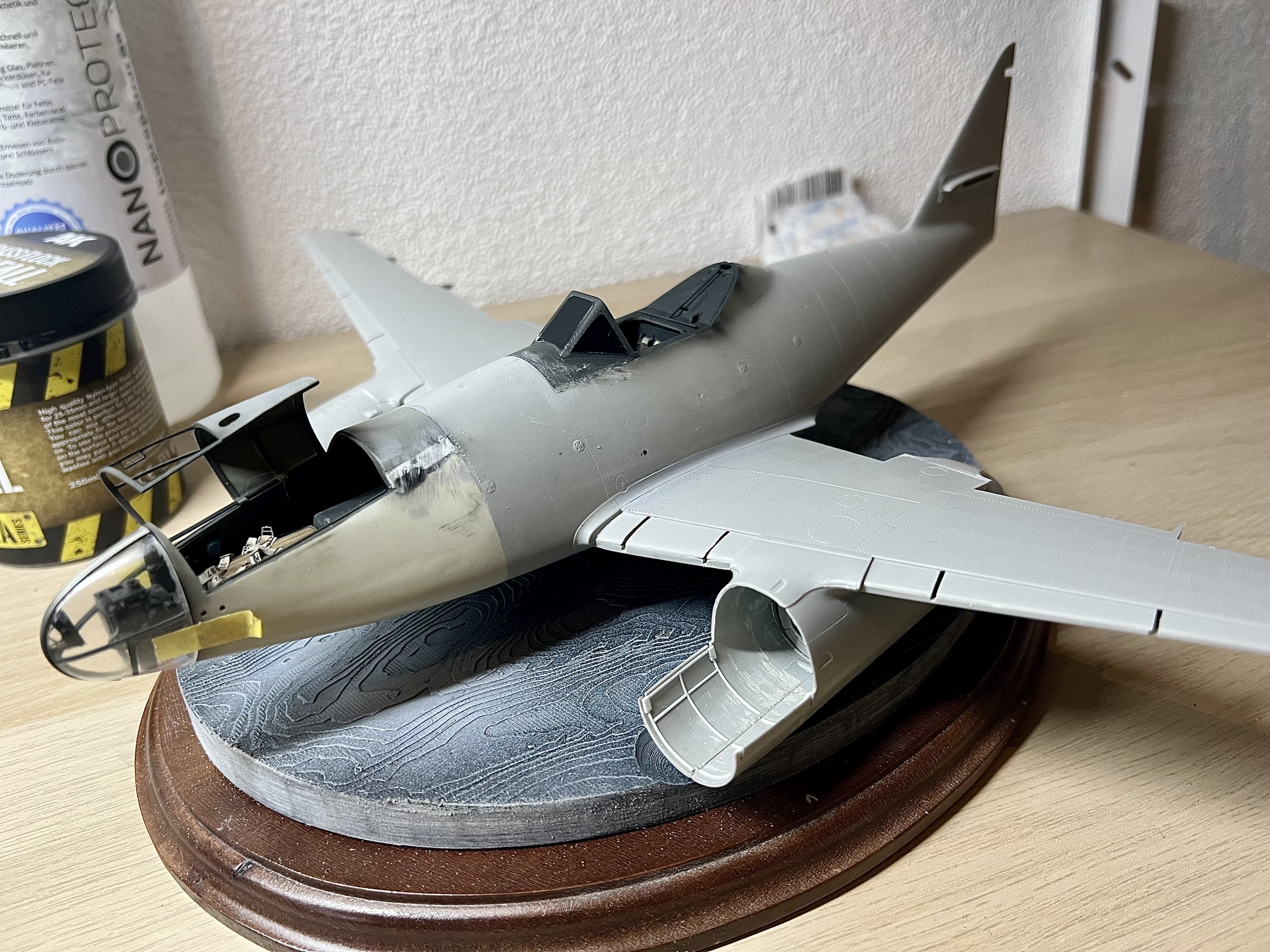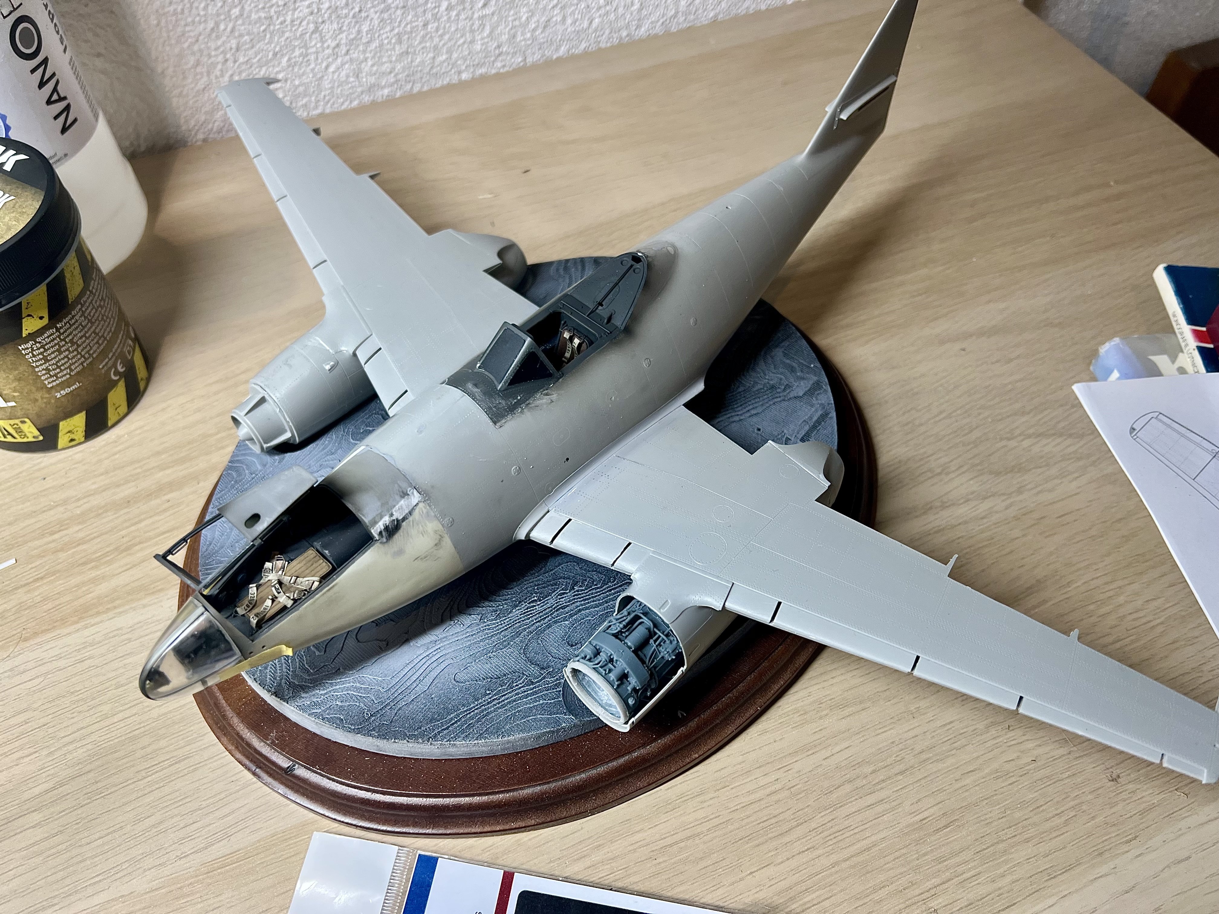 The T-bar at the rear cockpit deck came broken in the Sprue. Made a new one from thin rod and sprayed the lot. -