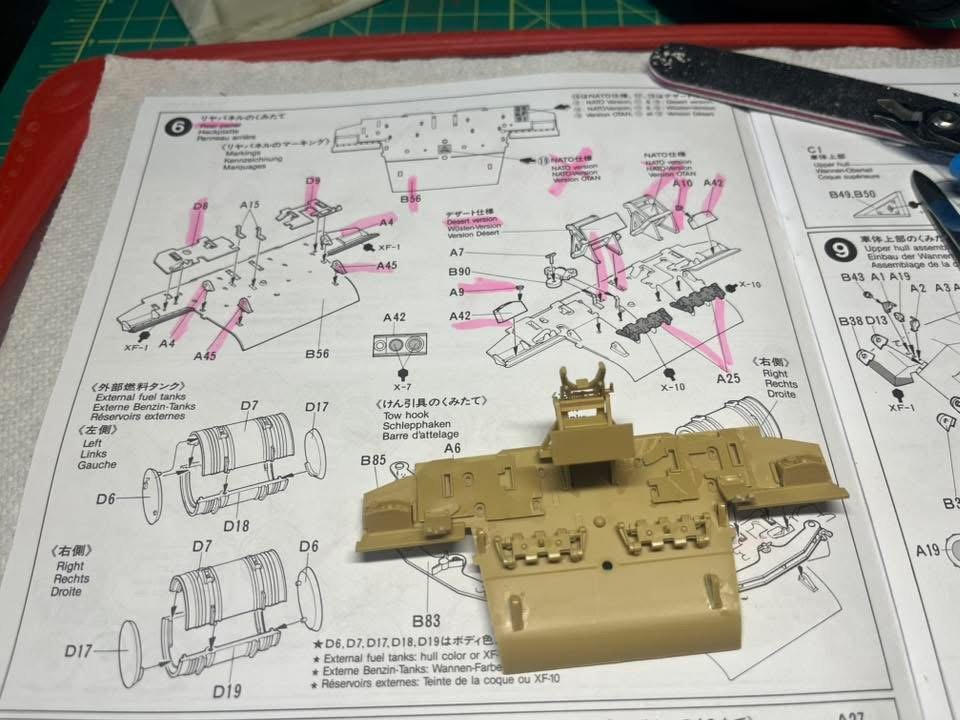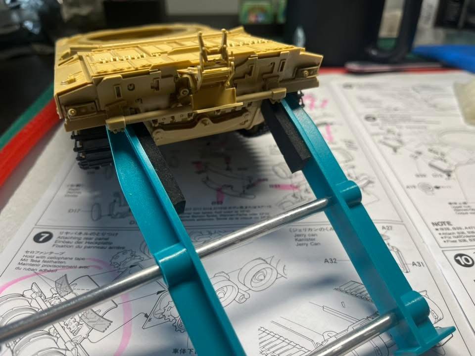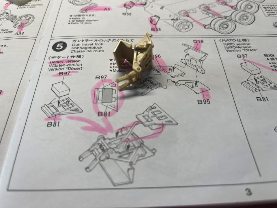 RalphSarc Posted 16 hours ago Author Posted 16 hours ago I’m building the Challenger 1 Desert version so assembled the correct gun travel lock!! Got to love how everything fits so well. Perfect Tamiya engineering!