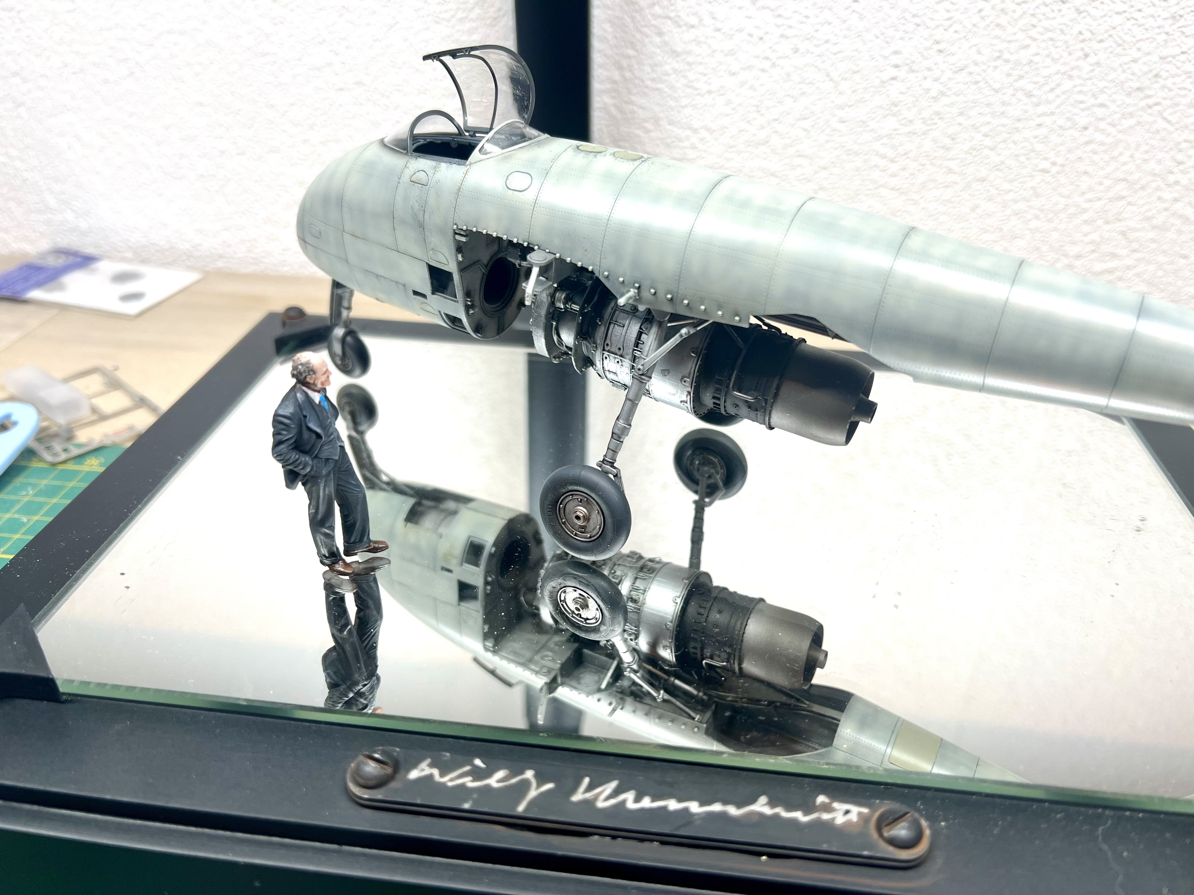Administrators JeroenPeters Posted January 2 Author Administrators Posted January 2 The base is almost done. Also sprayed the Me P1101 V1 lettering on the fuse. Still studying photo’s to determine the colour of the outside canopy frame. Looks like Rlm66 in some pics. You really need to decide at what stage you model this airframe. In the hangar during construction. Or after it has been towed outside. Or after the US tried to restore it. 6
