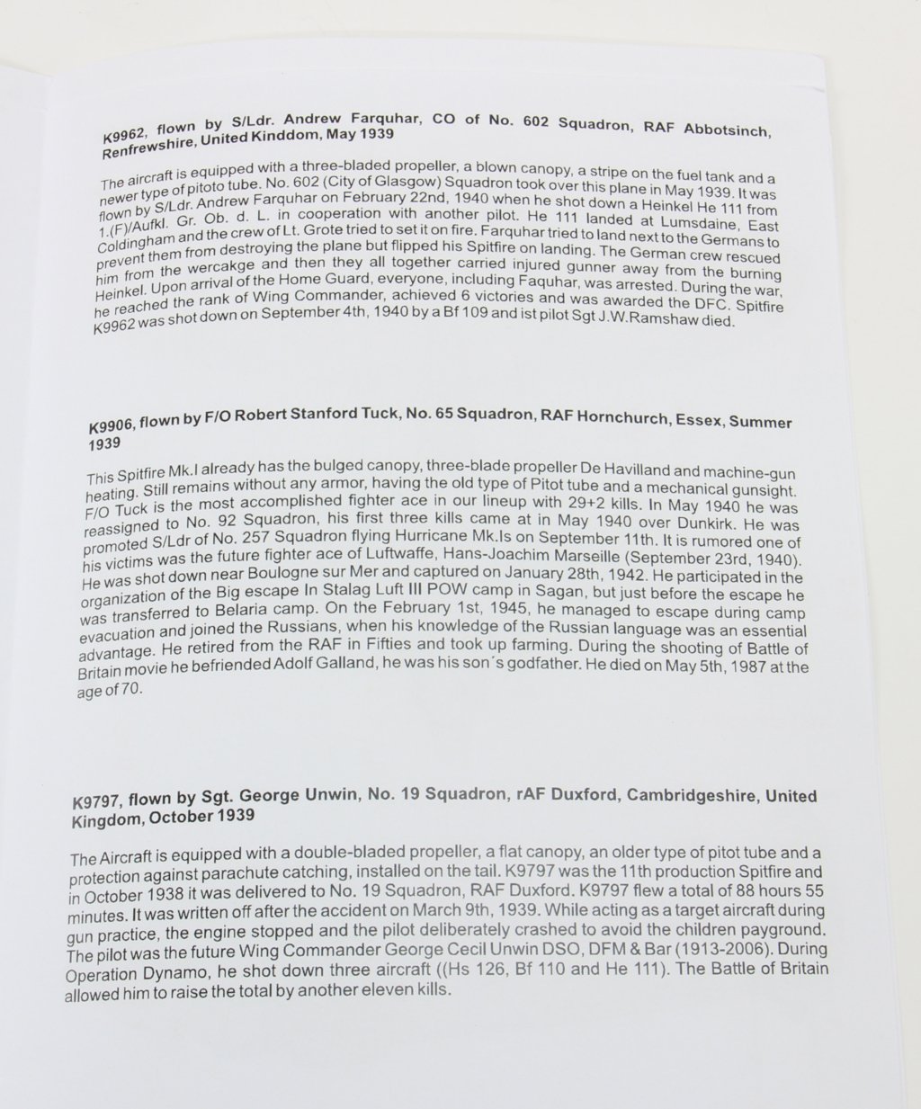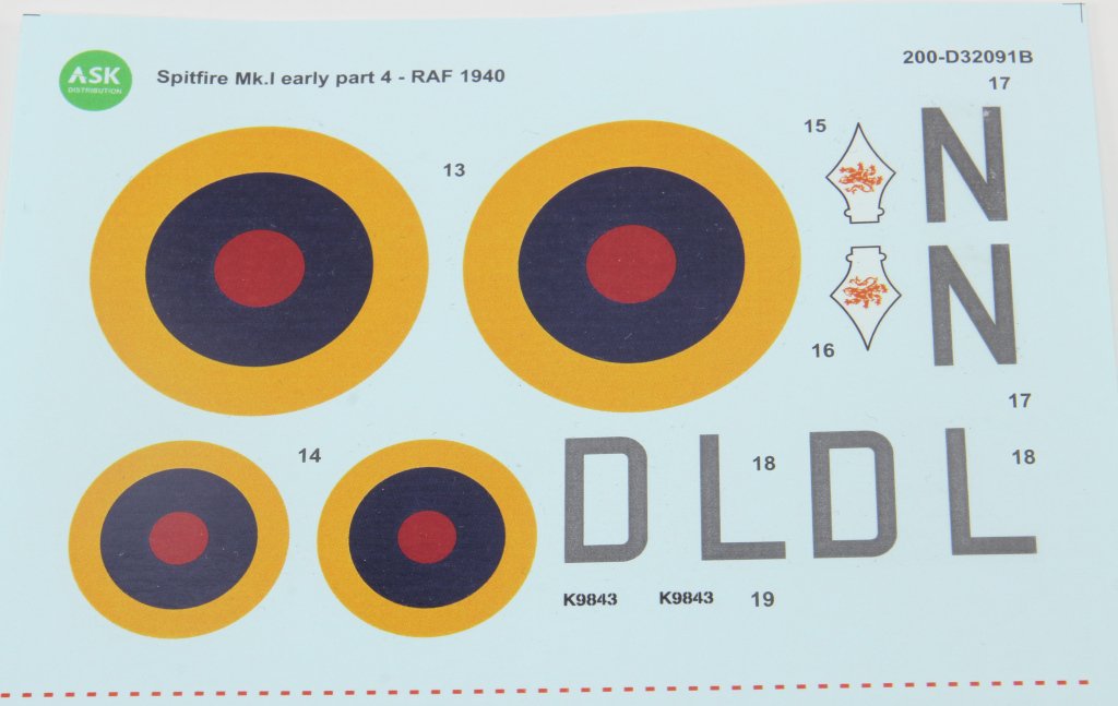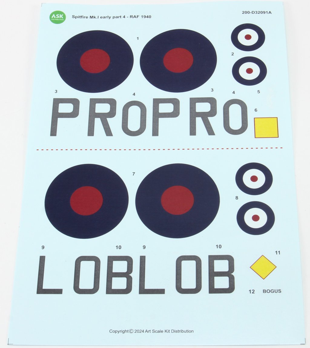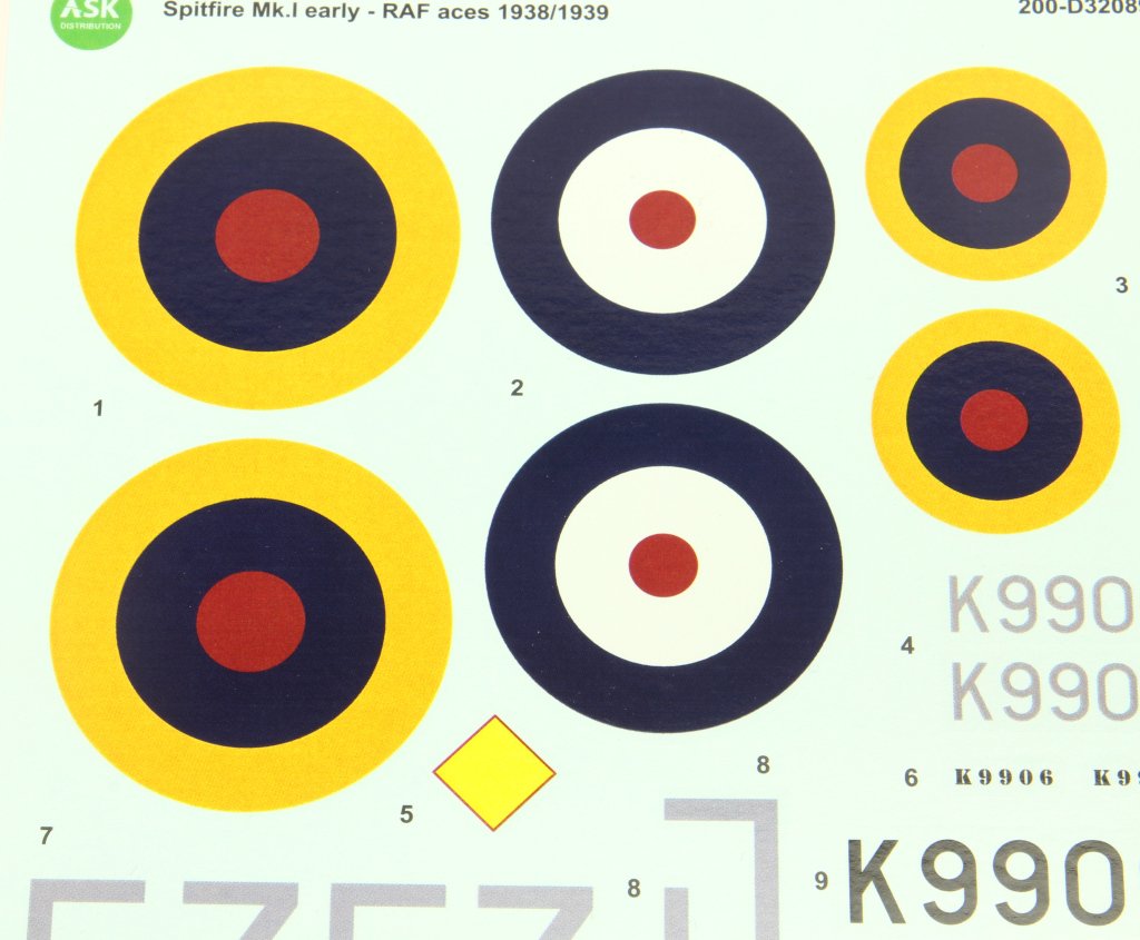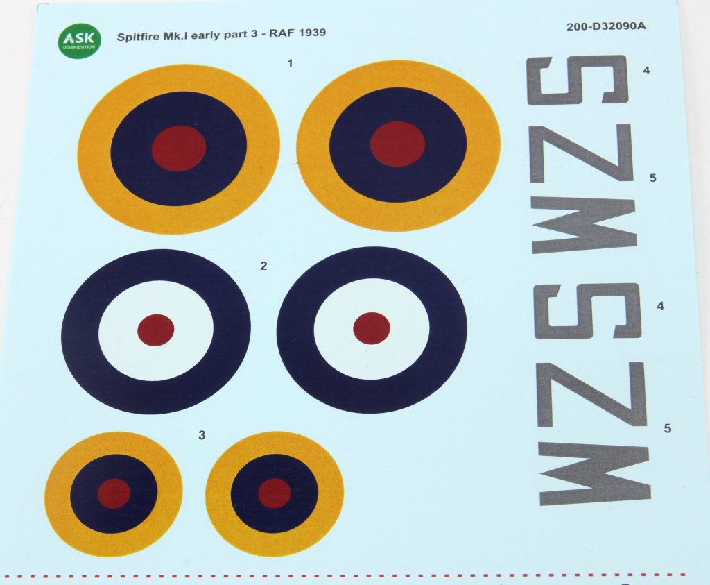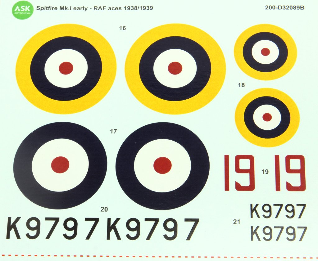 rverissimo Posted Wednesday at 11:25 PM Posted Wednesday at 11:25 PM ASK - Art Scale Kit Decal sheet 1:32 Spitfire Mk.1 Decals ( several sheets) sets available here Introduction Currently available are several 1:32 scale options for the early version of the iconic Spitfire Mk.I, including the highly anticipated release from Kotare Models, which covers the initial variants through to the Mk.Ia (mid-production) and raising the bar in terms of quality, detail and finesse as a reference of the best molds technoly available. The older Hasegawa offering may also serve as a more budget-friendly alternative, for which these decals can be used. These decals were produced in collaboration with Eduard, which in itself is a mark of quality. The printing is of superior standard, with well-defined colours. The roundels are perfectly centred and the decal film is minimal. However, for the more perfectionist modeller, trimming the excess film will help reduce the risk of silvering. The set includes three decal sheets, allowing for a choice between three different liveries, along with a complete set of service stencils and warning markings. Instructions The instructions (printed on an A5 sheet) present the three available liveries with clear four-view profiles, showing the camouflage patterns and decal placement. Suggested paint references include equivalents for the Gunze and MMP ranges. Stencil placement is also thoroughly covered, with dedicated four-view diagrams and notes regarding the use of white decals in cases where the wing is painted black. Also included is a brief historical and operational summary of each aircraft represented. so let's check the sheets! Spitfire Mk.I early part 2 - RAF aces 1938 / 1939 Ref. 200-D32089 price 20,37€ this sheet supplies decals for the following airframes: K9962, flown by S/Ldr. Andrew Farquhar, CO of No. 602 Squadron, RAF Abbotsinch, Renfrewshire, United Kinddom, May 1939 K9906, flown by F/O Robert Stanford Tuck, No. 65 Squadron, RAF Hornchurch, Essex, Summer 1939 K9797, flown by Sgt. George Unwin, No. 19 Squadron, RAF Duxford, Cambridgeshire, United Kingdom, October 1938 Spitfire Mk.I part 32 - RAF aces 1939 Ref. 200-D32090 price 20,37€ This set present the following decorations: (WZ-S) No. 19 Squadron, RAF Duxford, Camridgeshire, United Kinddom, early 1939 K9938, No. 72 Squadron, Church Fenton, North Yorkshire, United Kingdom, April 1939 (PN-M) No. 41 Squadron, RAF Catterick, North Yorkshire, Spring 1939 Spitfire Mk.1 Part 4 – RAF Aces 1940 Ref: 200-D32091 Available here Price: 20,37€ This set present the following decorations: No. 609 Squadron, Drem, East Lothian, United Kingdom, March 1940 No. 602 Squadron, Drem, East Lothian, United Kingdom, April 1940 K9843, No. 54 Squadron, Hornchurch, Essed, United Kingdom, early 1940 Conclusion A highly recommended decal sheet for those looking to depict an early Spitfire, still bearing its pre-WW2 markings—each option unique and appealing in its own way, just as only a Spitfire can be! Many thanks to Art Scale Kit (ASK) for providing the review sheets. Ricardo Veríssimo