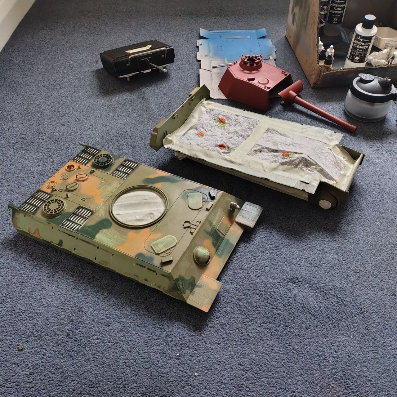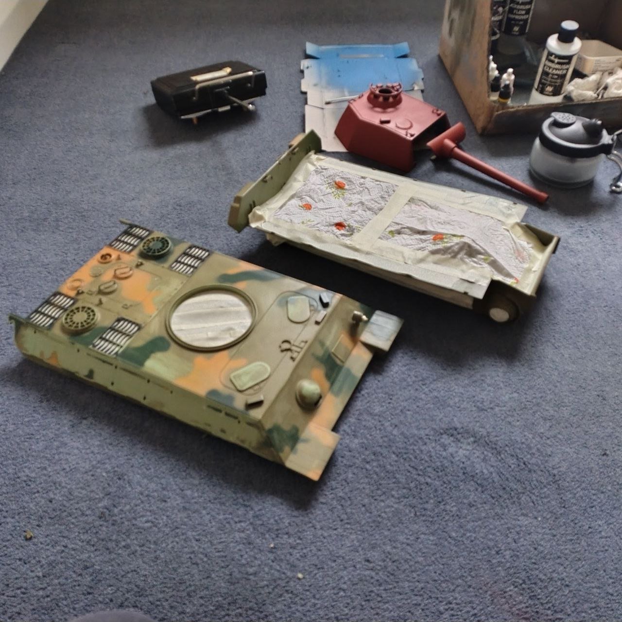Daniel_Roxy Posted 2 hours ago Author Posted 2 hours ago These were taken after I had stripped the turret of any useful parts and painted it red to see how the paint takes to the models plastic and how it would look. Can also see most of the side details have been removed for painting too. Oh and the running gear/tracks