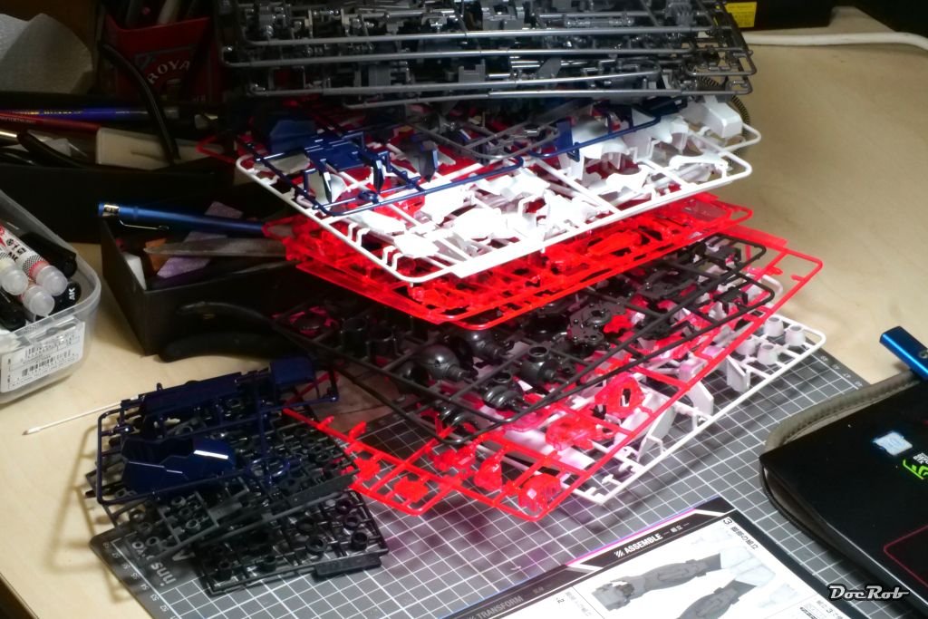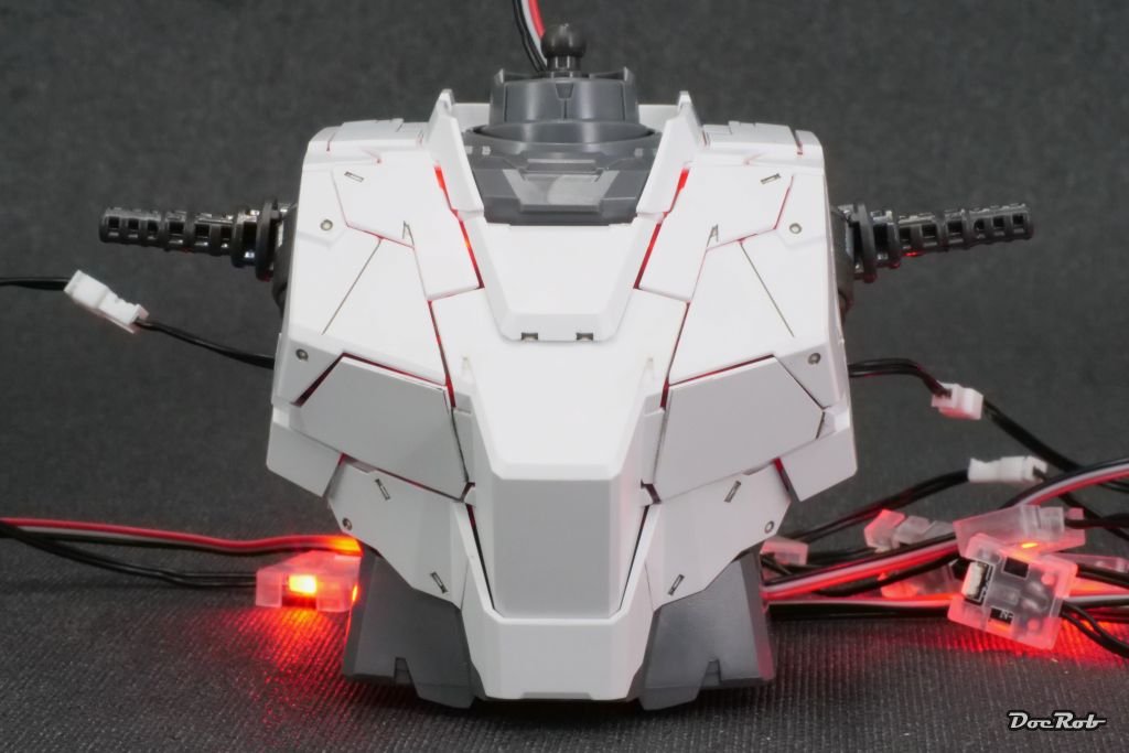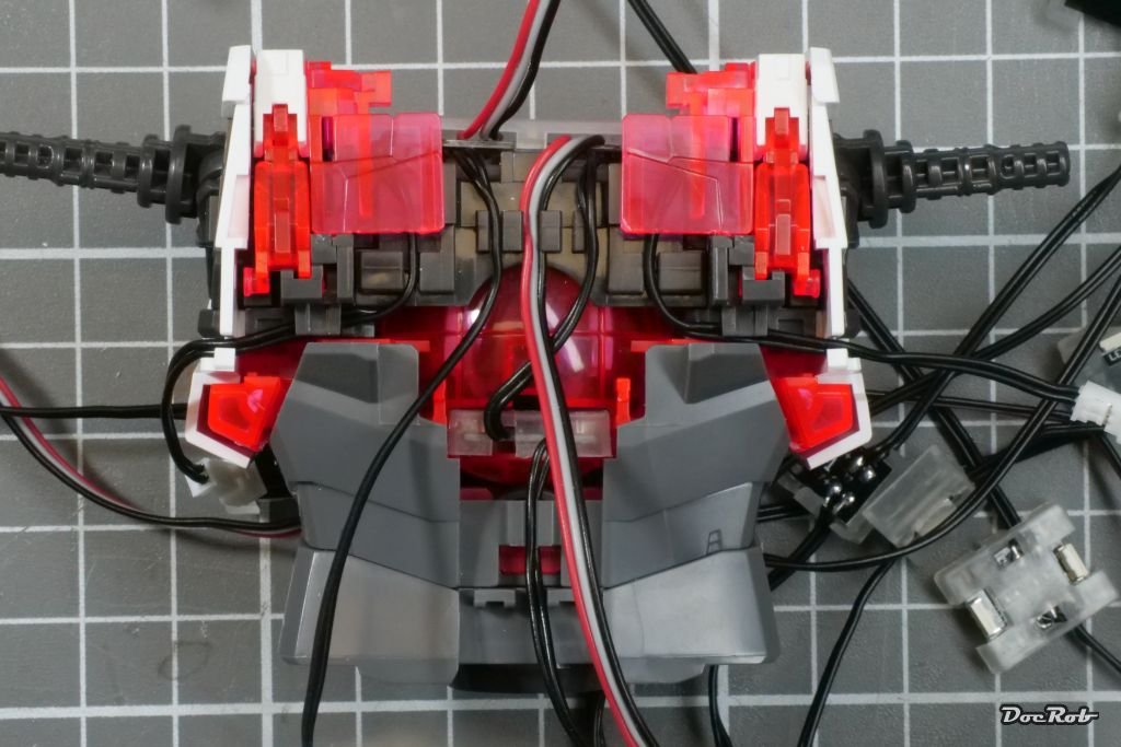 DocRob Posted 1 hour ago Author Posted 1 hour ago Next was the installation of the LED system from Kosmos. After looking closely into both manuals, it looked to me, that the Kosmos LED set is made very similar than the original Bandai one. That meant, I could follow the Unicorns instructions for these steps. The LED´s for torso, head, legs and arms are already connected, so testing is easy. I installed the main hub on top of the cockpit and fiddled the appropriate wires into the wire routing channels, the torso backside looked like this when finished: Next, all got covered up: Here are pics from the front of the finished torso with all panels closed (Unicorn mode) and all panels opened (Destroy mode): After finishing the torso, it took me more than 10 minutes to only pick the sprues for the next section, which are the legs: Cheers Rob